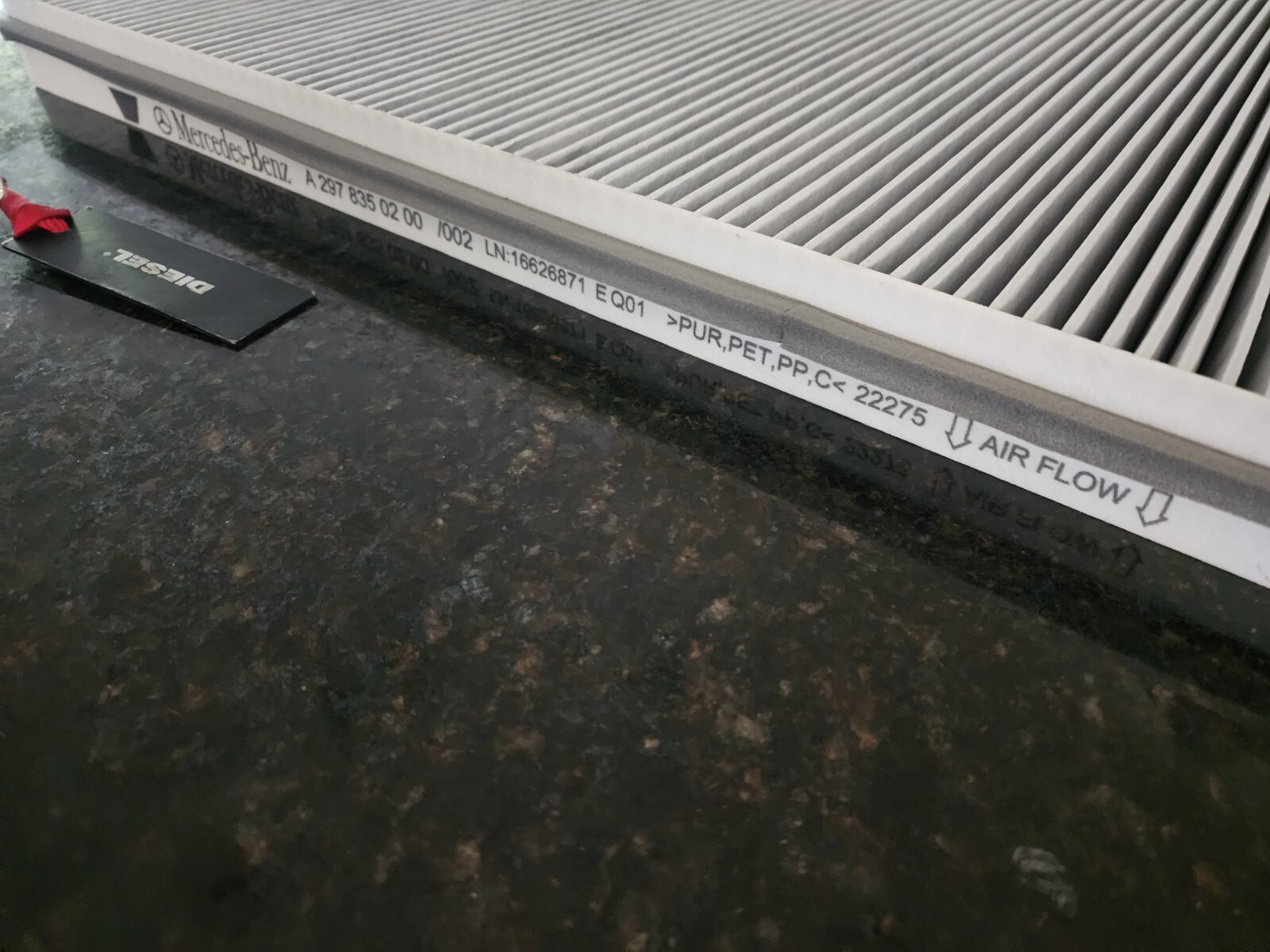 # LARGE Fine Particle Filter - Mercedes-Benz A297-835-02-00 **24 INCH X 17 INCH X 2 INCH** - Brand:  - SKU:297-835-02-00 - Description: Filter element. - Sold In Quantity:1 PREOWNED, FACTORY TAKE OFF, ONLY/LESS THAN 2,500 MILES **A297-835-02-00** 2022-23 Genuine OEM CABIN AIR FILTER V297 EQS 450+ EQS 580 EQS AMG ## VEHICLE FITMENT YearMakeModelBody & TrimEngine & Transmission2024Mercedes-BenzEQE 3504MaticElectric2024Mercedes-BenzEQE 5004MaticElectric2024Mercedes-BenzEQS 4504MaticElectric2024Mercedes-BenzEQS 5804MaticElectric2023Mercedes-BenzEQE 3504MaticElectric2023Mercedes-BenzEQE 5004MaticElectric2023Mercedes-BenzEQS 4504MaticElectric2023Mercedes-BenzEQS 5804MaticElectric2022Mercedes-BenzEQS 5804MaticElectric - Brand:  - SKU:297-835-02-00 - Description: Filter element. - Sold In Quantity:1