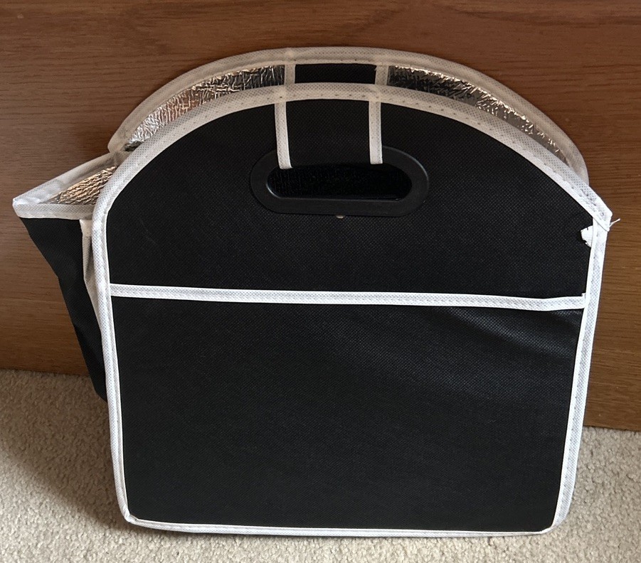 **AARP Insulated 3 Section Car Trunk Organizer Caddy 20" x 12" x 9.5"** Condition is Excellent Pre- Owned. Clean. One small hole in fabric. See last photo From a smoke free home. It has 3 storage sections. Please see photos for details as if they were part of the description. Thanks for looking.