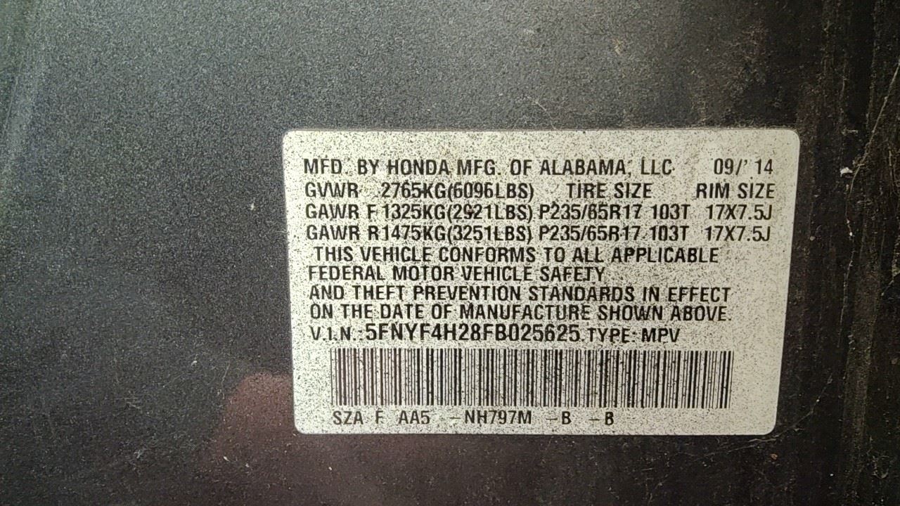 - VIN #: 5FNYF4H28FB025625