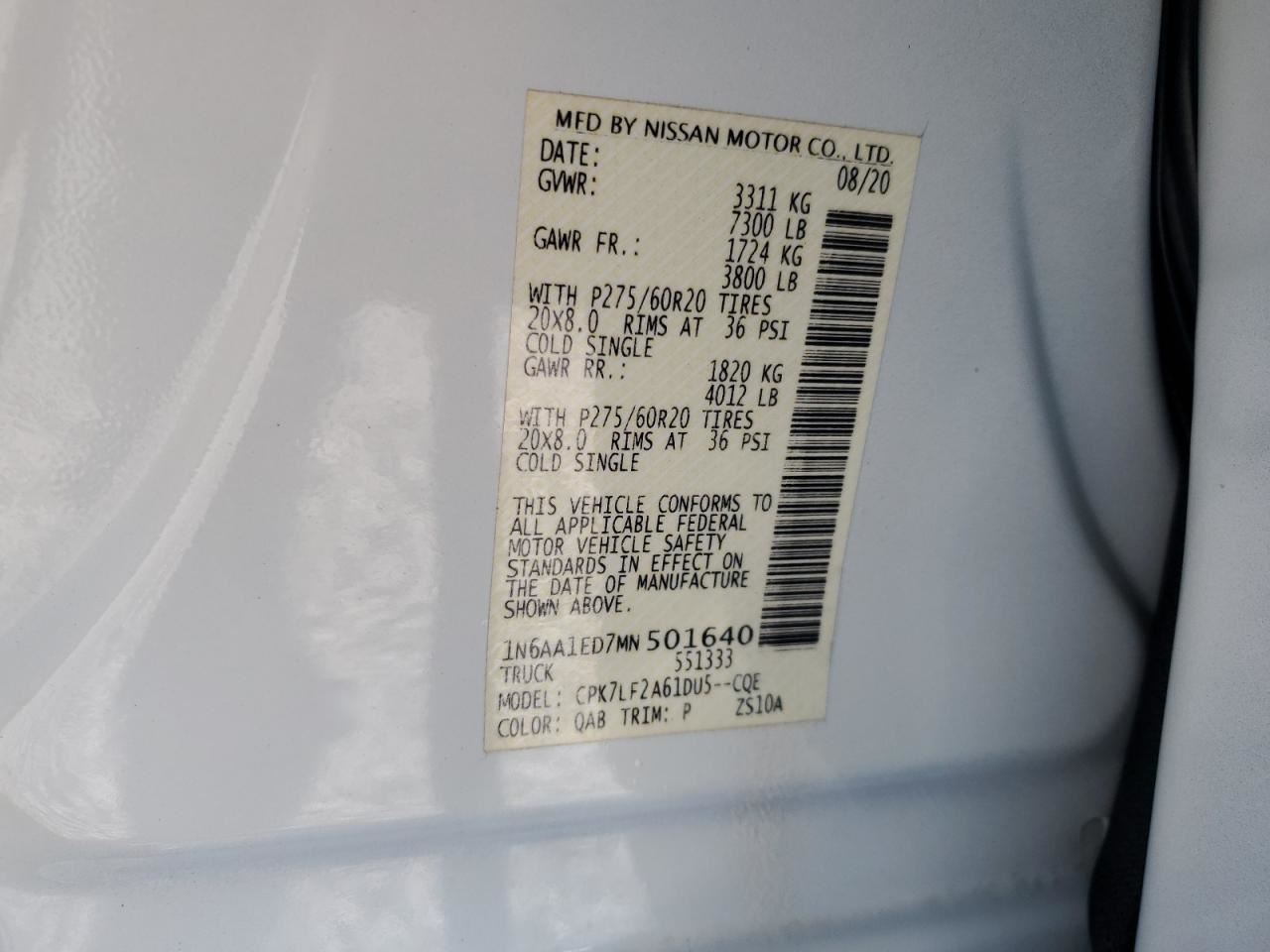 - Donor VIN: 1N6AA1ED7MN501640