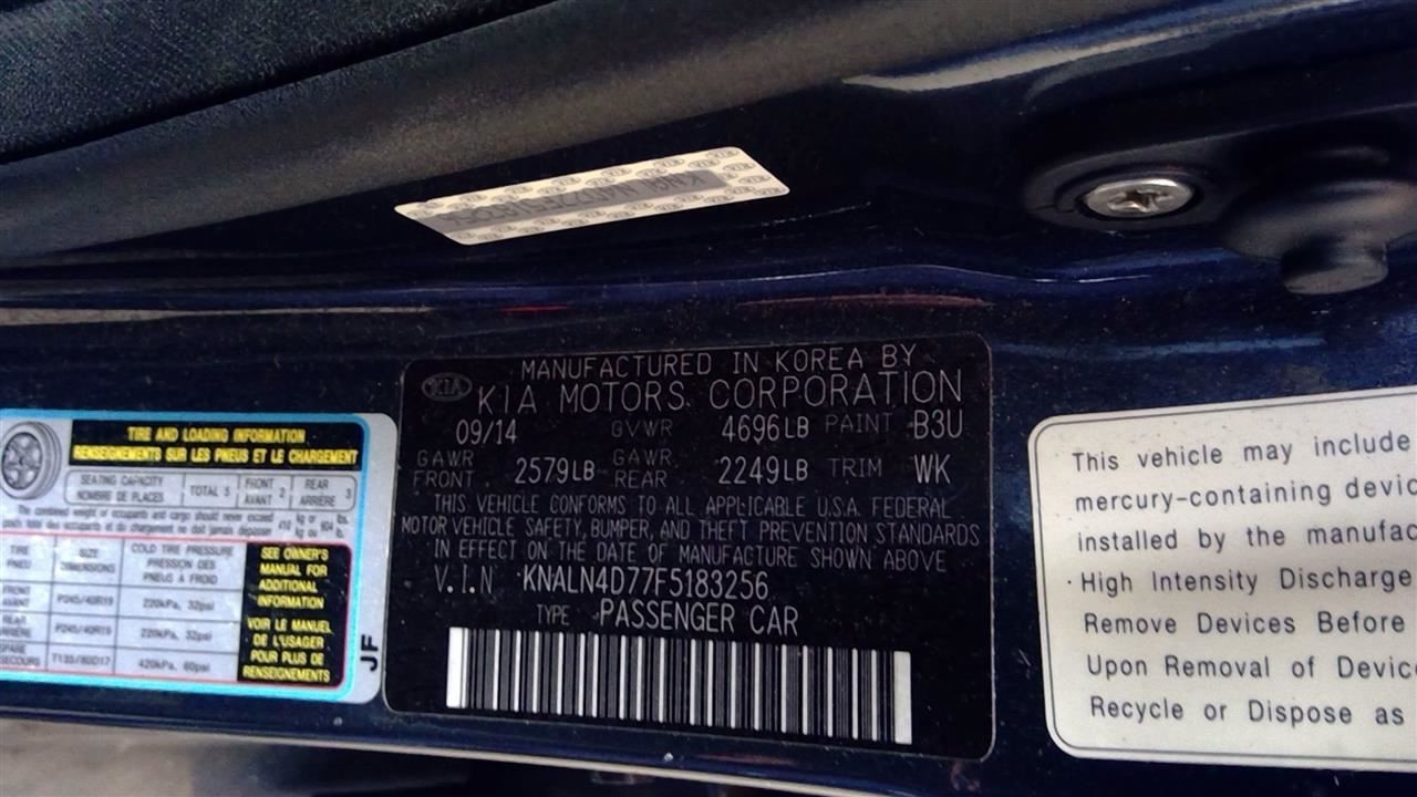 - VIN #: KNALN4D77F5183256