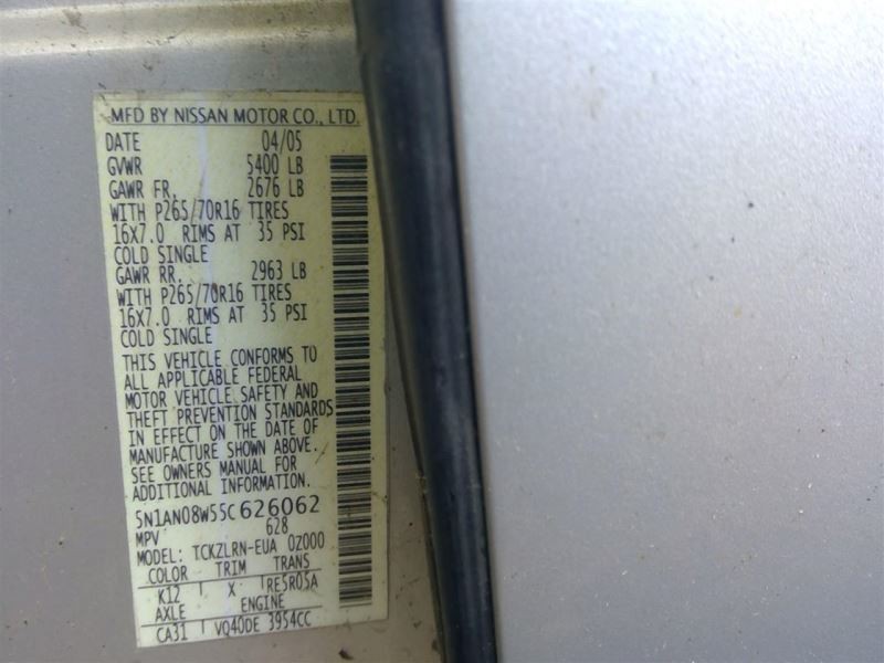 - Donor VIN: 5N1AN08W55C626062