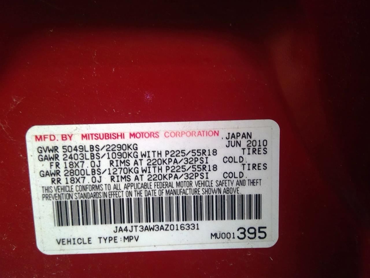 - VIN #: JA4JT3AW3AZ016331
