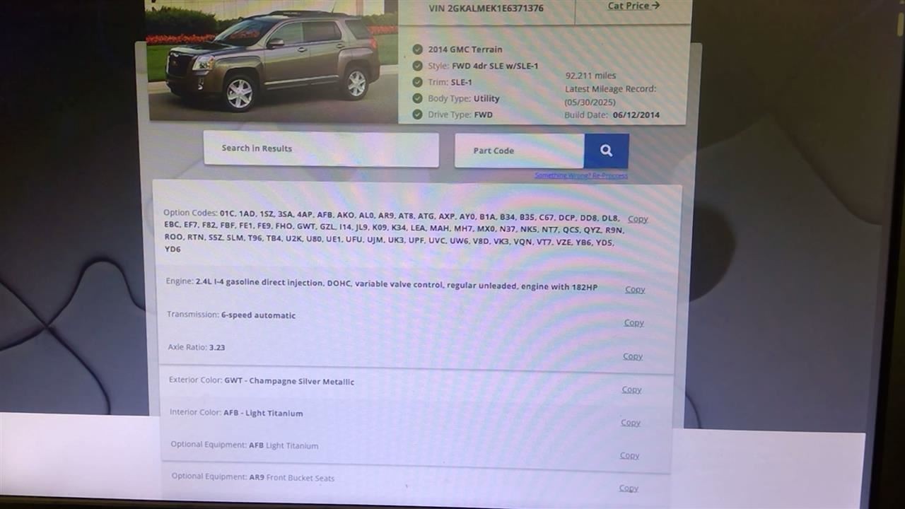 - Donor VIN: 2GKALMEK1E6371376