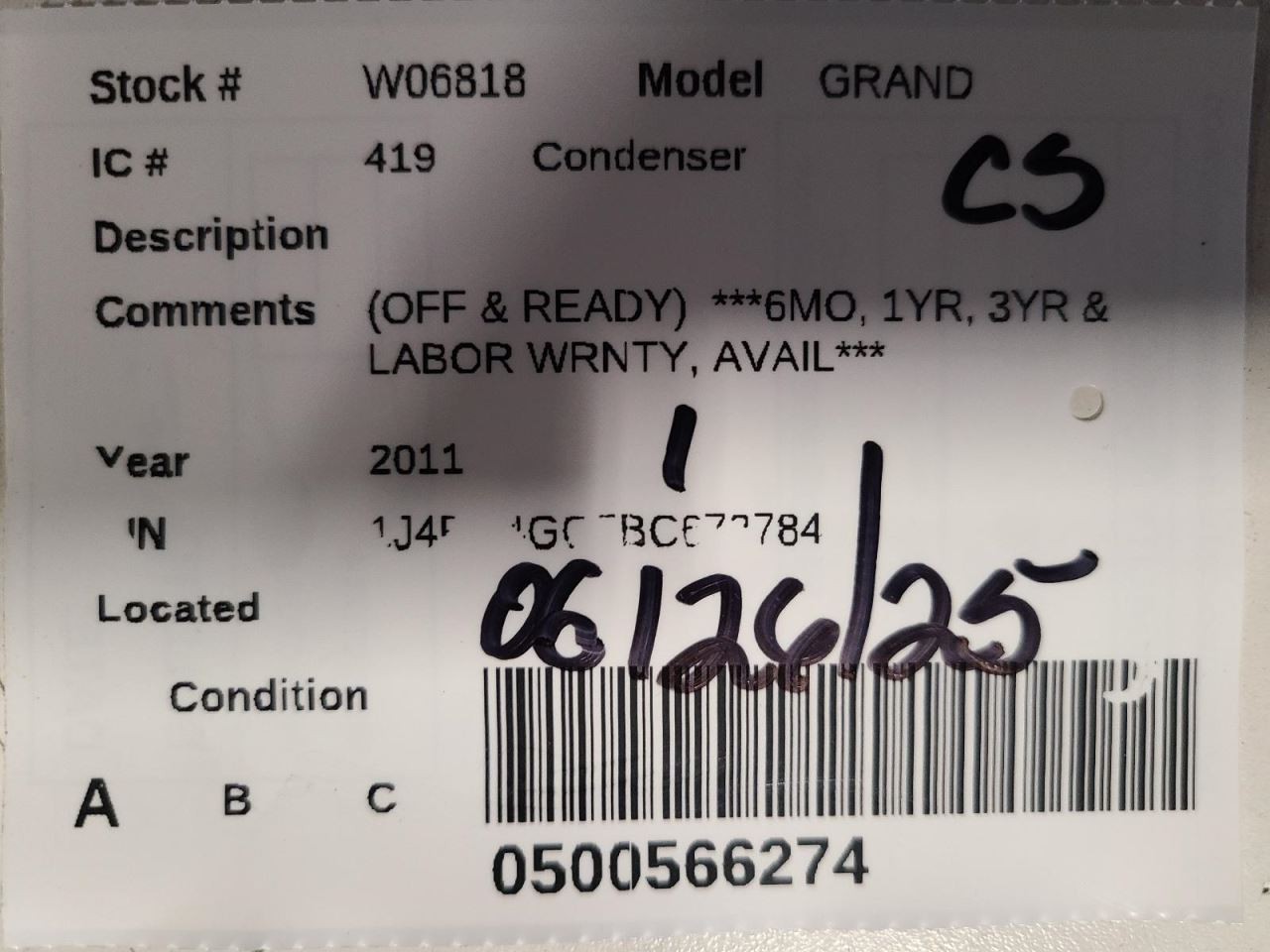 - Donor VIN: 1J4RR4GG5BC672784