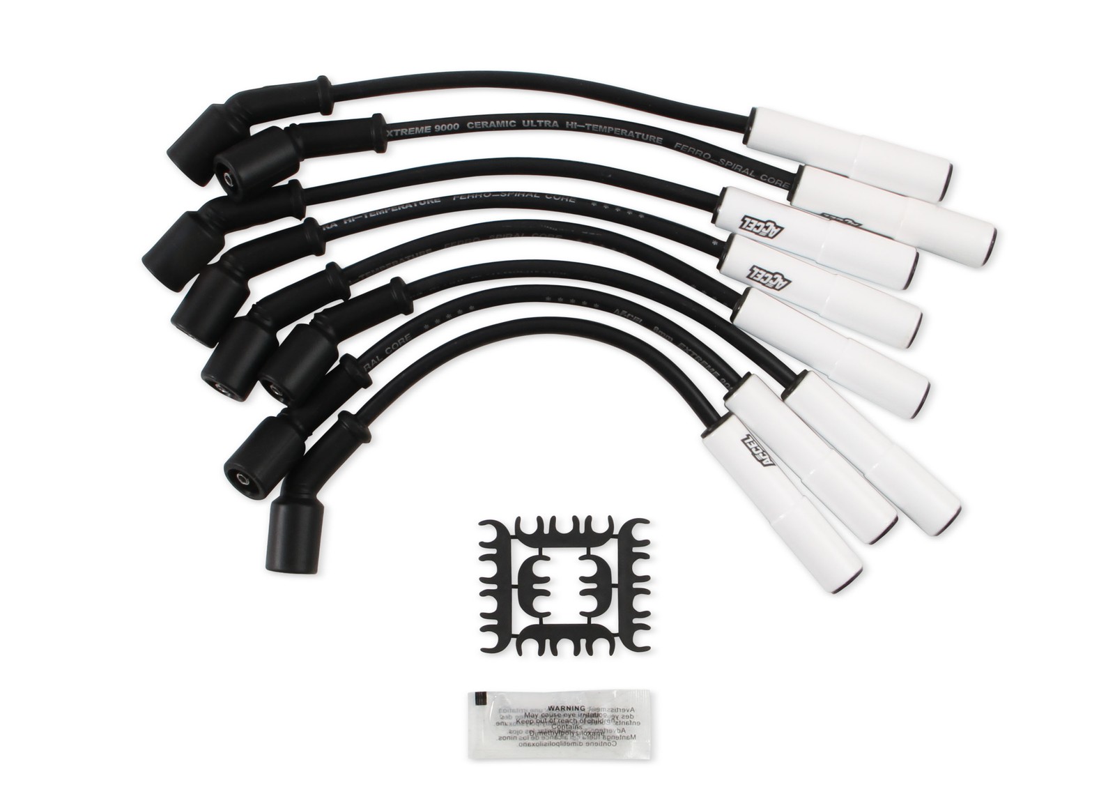 # 9059C Spark Plug Wire Set - Extreme 9000 Ceramic Boot - GM 4.8/5.3/6.0/6.2L This custom fit extreme heat ceramic boot wire sets fit GM 4.8/5.3/6.0/6.2L LS. 1997-2015 Total length= 12" Direct fit for 2014+ Gen 5 LT1/LT4 based engines (Corvette/Camaro/Truck/SUV). ACCEL now offers the cure for burnt spark plug boots with Extreme 9000 Ceramic wire kits. The 8mm Ferro-Spiral core wire now has ceramic boots on the spark plug end of the wires. Ceramic boots withstand up to 2,000 degrees. Great for running headers with close tolerances, an engine bay with little room, or an RV with boots that melt because of heat. Ultra high temperature double silicone construction wire rated at 600 degrees Fahrenheit peak. 500 ohms/ft Ferro-Spiral core developed for performance use. Excellent energy delivery to the spark plugs, while providing the highest level of RFI/EMI suppression. Stainless steel spark plug terminals for maximum spark energy to the plugs. Pre-made to factory lengths for a perfect fit. In addition to 1997-2015 Gen 3/4 LS, also a direct fit for Gen V GM engines: 2015-2016 Cadillac Escalade 6.2L 2016 Chevrolet Camaro 6.2L 2014-2016 Chevrolet Corvette 6.2L 2015-2016 Chevrolet Corvette Z06 6.2L 2014-2016 Chevrolet Silverado 1500 4.3L/5.3L/6.2L 2015-2016 Chevrolet Suburban 5.3L 2015-2016 Chevrolet Tahoe 5.3L 2014-2016 GMC Sierra 1500 4.3L/5.3L/6.2L 2015-2016 GMC Yukon 5.3L/6.2L - Total length= 12" - Straight Spark Plug Boot - Ceramic boots withstand up to 2,000° Fahrenheit - 8mm double silicone construction black wire rated at 600° F rated - 500 Ohms/foot ferro sprial core offers the highest level of RFI/EMI suppression General Policies **Payment Method** - We gladly accept PayPal and All Major Credit Cards. Don't have a PayPal account? **Warranty & Return** **Policy** - We want to make sure that every customer is completely satisfied with their purchase. Although obsolete, scratch & dent and used items do not have a warranty, we understand that things happen and every situation is different. Please let us know of any issues you may have before leaving feedback so we have an opportunity to make things right. We will do everything possible to make sure you are fully satisfied with your purchase and we want to earn your continued business! - We want you to be completely satisfied with your purchase – please let us know if you have any problems with your purchase **before** **leaving feedback** so we have a chance to make it right – we want your repeat business!