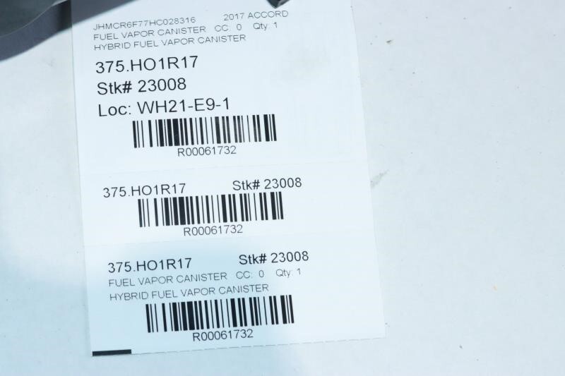 Description Donor Vehicle VIN: JHMCR6F77HC028316 Model: ACCORD Year: 2017 Mileage: 0 (0 = not available or unknown) Stock Number: 23008 Store Number: 1 Part Detail Part Grade: Part Category: U Part Placement: Notes: HYBRID FUEL VAPOR CANISTER This part will fit these makes and models with these options WARRANTY / GUARANTEE **Return Policy** All parts we sell come with a **30 Day Money Back Guarantee** unless otherwise stated. The 30 day period starts when you take possession of the part. We do not cover the cost of labor charges during the installation of your parts. All original shipping costs are non-refundable. **Standard Warranty** We offer a standard warranty on all mechanical parts. This covers the part only, no labor charges to install the part. We are not responsible for any improper installation or misdiagnosis. SHIPPING NOTESABOUT USHELP **Rancho Cordova Auto Dismantling** ships to US addresses within the continental 48 states. **Shipping to Alaska, Hawaii, Puerto Rico, APO, FPO or PO Box addresses** is available for select parts only. **Local Pick-up at our facilities is available.** Please contact us prior to your purchase to arrange local pick-up. Buyer must select 'Buy It Now' prior to local pick-up. **Please contact us prior to purchasing this part** if you have any questions regarding our business policies, the warranties or guaranties we offer or the fitment of this part with your vehicle. **Parts Grading.** A standard code system is used to communicate the condition and quality of a part between automotive recyclers, automotive repair shops, and insurers. Knowing how these codes are used will help you understand whether the part meets your expectations before you buy it and what you can expect from the part when you receive it. **A Grade** \- The highest quality part. It is of low miles and/or exceptional condition for its age. **B Grade** \- The second level quality part. It is of average miles and normal condition for its age. **C Grade** \- The third level quality part. It has high miles and/or light damage. **No Grade** \- A part that has not yet been graded.