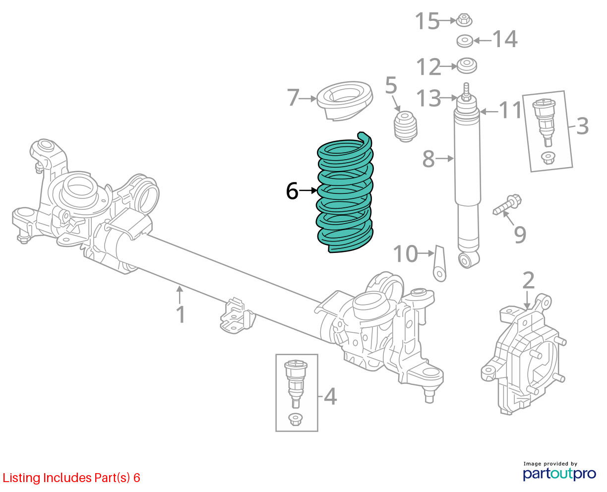 Description Listing is for the 1 pictured coil OR air spring only. Please confirm compatibility prior to purchasing. Thanks and Buy With Confidence!!! The 30 day period starts when you take possession of the part. No labor warranty is provided. In the event a part sold with a warranty fails to operate within the warranty period we will replace the part(s) with a functionally equivalent part or refund the part purchase price, at our option. Original shipping charges and return shipping charges are not refunded. Please ship the item back to: **August Pohl Auto Parts** **2225 M 139** **Benton Harbor, MI 49022** SHIPPING NOTESABOUT USHELP August Pohl Auto Parts ships to US addresses within the **48 states only via UPS ground or USPS Priority Mail**. Tracking will be uploaded to the item so the buyer can track the shipment from whichever carrier we use. No Alaska, Hawaii, Puerto Rico, APO, FPO or PO Box please. **Pick up at our facilities is available**. Please message us **prior** to your purchase to arrange pick up. We are open from 8 a.m. til 5 p.m. Eastern time zone. The yard closes at 4 p.m. so please let us know ahead of time if you plan on picking up at our facility. We are located at 2225 M-139 Benton Harbor, MI 49022. Most areas in the US are within 5 days. Buyer is responsible for all shipping charges both original and return for items returned that are not needed or ordered incorrectly. If the color is described in the listing but is wrong for the buyer's vehicle, they will be responsible for all shipping charges. If you have a question about a part please contact us **BEFORE** purchasing. We try to answer all messages within 24 hours. Our normal business hours are Monday-Friday 8 a.m. til 5 p.m. eastern time. **Core Charge.** Core is an acronym for ‘Cash On Return’. A core charge is sometimes applied to rebuildable parts such as engines or alternators that can be redeemed for a portion of their original price. If the part you are purchasing has a core charge applied, it will be noted in the description. **Parts Grading.** A standard code system is used to communicate the condition and quality of a part between automotive recyclers, automotive repair shops, and insurers. Knowing how these codes are used will help you understand whether the part meets your expectations before you buy it and what you can expect from the part when you receive it. A Grade\- The highest quality part. It is of low miles and/or exceptional condition for its age.B Grade\- The second level quality part. It is of average miles and normal condition for its age.C Grade\- The third level quality part. It has high miles and/or light damage.No Grade\- A part that has not yet been graded. **Part Category.** A category is a way of classifying a part in inventory. The category appears as a one-letter abbreviation under Part Detail. A category is a way to identify a part by location or condition, and helps to indicate whether a part needs to be pulled and prepped before shipping. **Standard Part Categories include:** **Part Category****Description****Definition**UUnboltedUsed part, loose and unbolted from vehicle.YYardUsed part, still on vehicle.NNewPart manufactured from scratch.RRebuiltUsed part that is rebuilt or reconditioned.SSurplusUsed part for which too many are available. **Part Color Definitions** Amber AMB Burgundy BRG RedREDBeigeBEIGoldGLDSilverSILBlackBLKGrayGRYTanTANBlueBLUGreenGRNTealTEABronzeBRZMaroonMRNWhiteWHTBrownBRNPurplePURYellowYEL