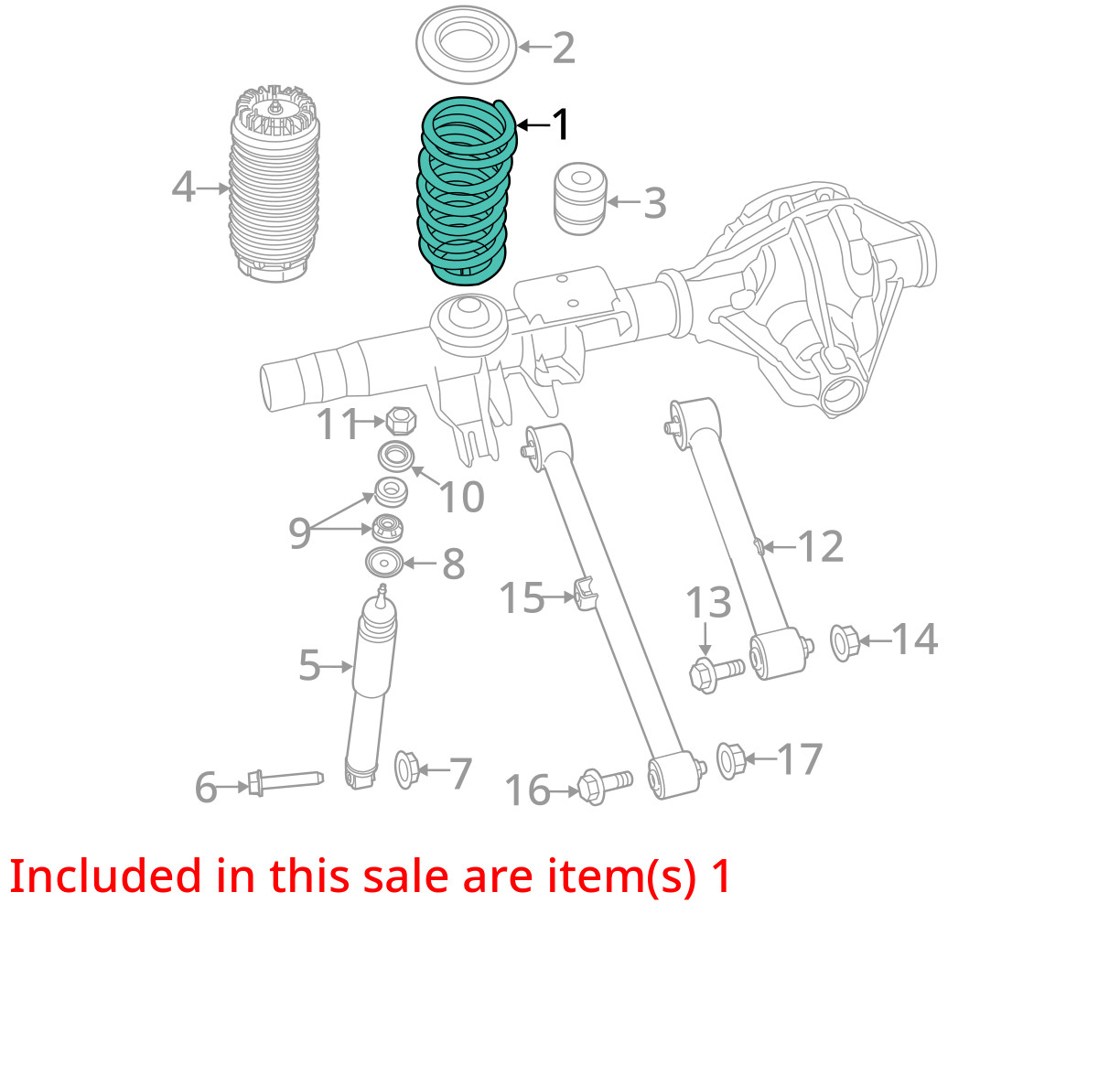 Description Listing is for the 1 pictured coil OR air spring only. Please confirm compatibility prior to purchasing. Thanks and Buy With Confidence!!! The 30 day period starts when you take possession of the part. No labor warranty is provided. In the event a part sold with a warranty fails to operate within the warranty period we will replace the part(s) with a functionally equivalent part or refund the part purchase price, at our option. Original shipping charges and return shipping charges are not refunded. Please ship the item back to: **August Pohl Auto Parts** **2225 M 139** **Benton Harbor, MI 49022** SHIPPING NOTESABOUT USHELP August Pohl Auto Parts ships to US addresses within the **48 states only via UPS ground or USPS Priority Mail**. Tracking will be uploaded to the item so the buyer can track the shipment from whichever carrier we use. No Alaska, Hawaii, Puerto Rico, APO, FPO or PO Box please. **Pick up at our facilities is available**. Please message us **prior** to your purchase to arrange pick up. We are open from 8 a.m. til 5 p.m. Eastern time zone. The yard closes at 4 p.m. so please let us know ahead of time if you plan on picking up at our facility. We are located at 2225 M-139 Benton Harbor, MI 49022. Most areas in the US are within 5 days. Buyer is responsible for all shipping charges both original and return for items returned that are not needed or ordered incorrectly. If the color is described in the listing but is wrong for the buyer's vehicle, they will be responsible for all shipping charges. If you have a question about a part please contact us **BEFORE** purchasing. We try to answer all messages within 24 hours. Our normal business hours are Monday-Friday 8 a.m. til 5 p.m. eastern time. **Core Charge.** Core is an acronym for ‘Cash On Return’. A core charge is sometimes applied to rebuildable parts such as engines or alternators that can be redeemed for a portion of their original price. If the part you are purchasing has a core charge applied, it will be noted in the description. **Parts Grading.** A standard code system is used to communicate the condition and quality of a part between automotive recyclers, automotive repair shops, and insurers. Knowing how these codes are used will help you understand whether the part meets your expectations before you buy it and what you can expect from the part when you receive it. A Grade\- The highest quality part. It is of low miles and/or exceptional condition for its age.B Grade\- The second level quality part. It is of average miles and normal condition for its age.C Grade\- The third level quality part. It has high miles and/or light damage.No Grade\- A part that has not yet been graded. **Part Category.** A category is a way of classifying a part in inventory. The category appears as a one-letter abbreviation under Part Detail. A category is a way to identify a part by location or condition, and helps to indicate whether a part needs to be pulled and prepped before shipping. **Standard Part Categories include:** **Part Category****Description****Definition**UUnboltedUsed part, loose and unbolted from vehicle.YYardUsed part, still on vehicle.NNewPart manufactured from scratch.RRebuiltUsed part that is rebuilt or reconditioned.SSurplusUsed part for which too many are available. **Part Color Definitions** Amber AMB Burgundy BRG RedREDBeigeBEIGoldGLDSilverSILBlackBLKGrayGRYTanTANBlueBLUGreenGRNTealTEABronzeBRZMaroonMRNWhiteWHTBrownBRNPurplePURYellowYEL
