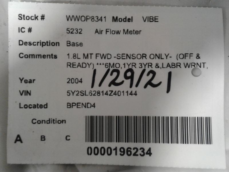 - Conditions & Options: 1.8L MT FWD -SENSOR ONLY- OFF RE