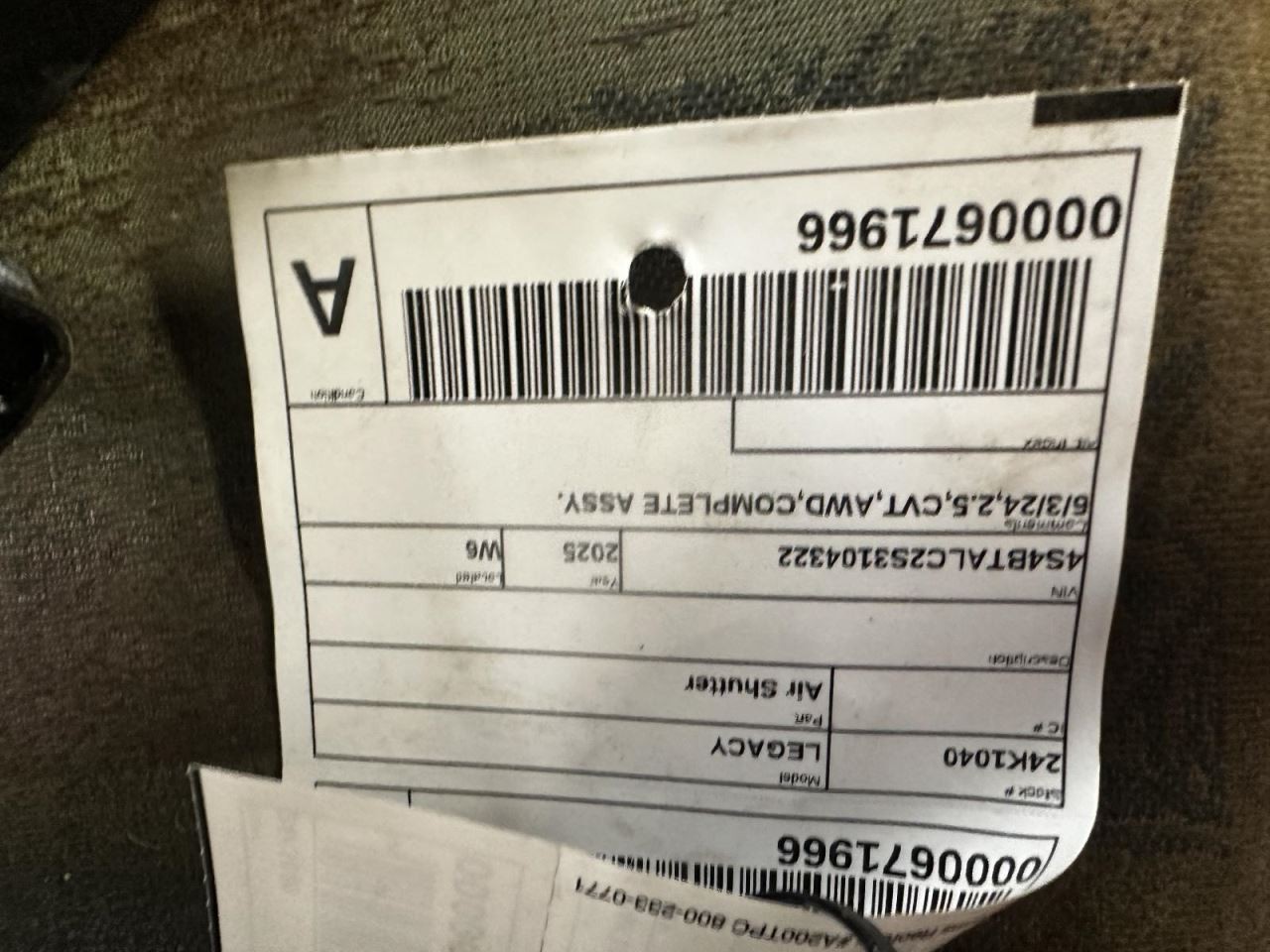- Conditions & Options: 6 3 24,2.5,CVT,AWD,COMPLETE ASSY.
