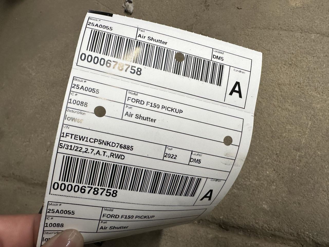 Air Shutter Lower Fits 22-23 FORD F150 PICKUP 1936992