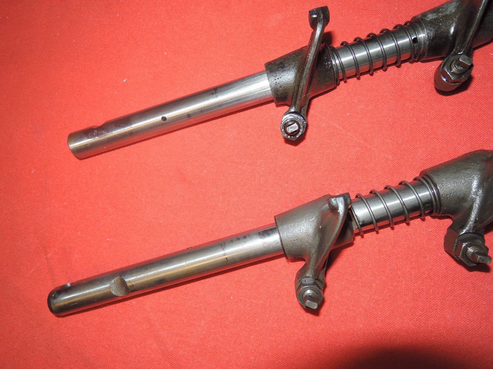 A USED Original PAIR of ROCKER ARM SHAFTS for V-6 motors of Alfa Romeo GTV-6 and Milano models. There is a left and a right. They each include the pictured rocker arms. There are some marks on the shafts from rotation, see close ups (finger nail does not get caught on the marks). Look closely at photos for details. Visit My Alfa Romeo GTV-6 OR Milano / 75 Stores for more parts. I will combine multiple items whenever possible to save on shipping costs, please request a combined invoice prior to making payment. Thank you. AU-9-5-25