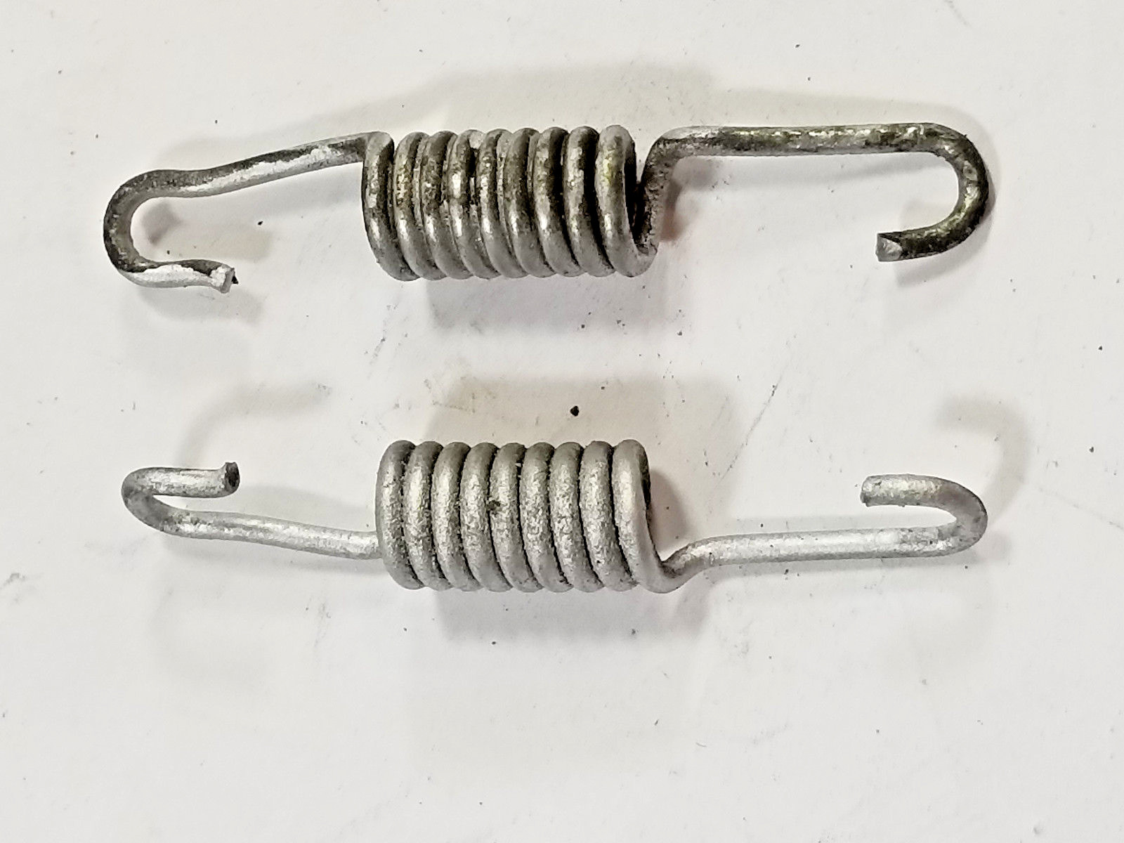 # Alfa Romeo Spider Hand Brake, Parking, Emergency Brake Shoes spring set. These are the larger but shorter of the springs comes as pictured. Price is for both.Off a 1988 Alfa Romeo Spider, Fits year 71 to 94 models. _**The pics are always of the actual item you will receive.**_ _Company_ _Names and Logos mentioned and /or displayed here are solely Registered_ _Trademarks of their respective owners and we have no affiliation_ _._