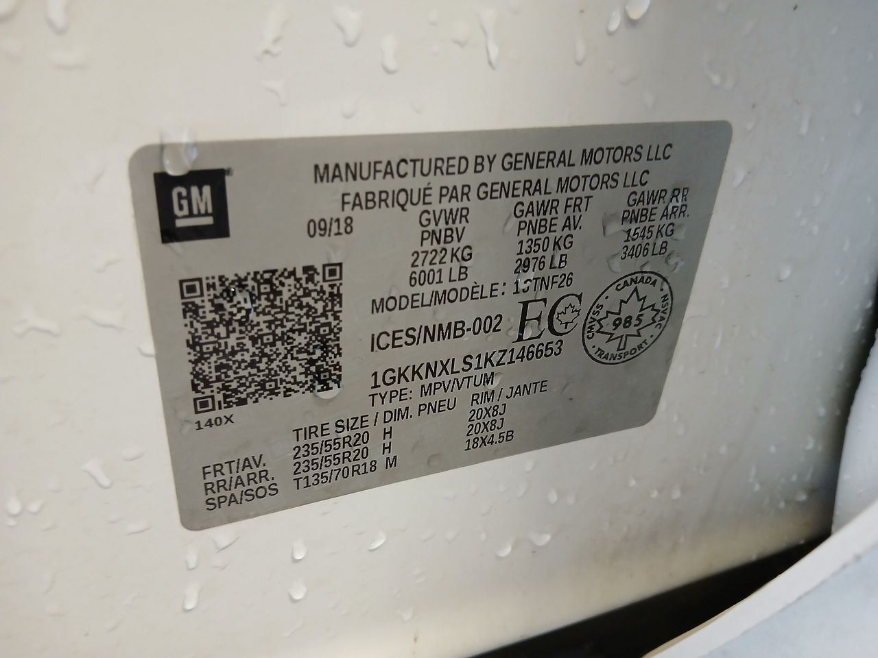 - VIN #: 1GKKNXLS1KZ146653