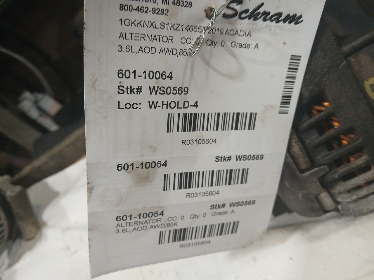 1923   Description 3.6L,AOD,AWD,85K Mileage: 84000 This item will fit the following vehicles/applications: ACADIA 17 VIN Z (11th digit), 3.6L, 170 amp (opt KW7) ACADIA 18-23 3.6L, 170 amp (opt KW7) BLAZER 19-24 3.6L, 170 amp (opt KW7) XT5 17-19 170 amp (opt KW7) XT5 20-24 3.6L, 170 amp (opt KW7) XT6 20 170 amp (opt KW7) XT6 21-23 3.6L, 170 amp (opt KW7) **Original Equipment Alternator** **Schram Auto Parts – Trusted OEM Quality Since 1923** This listing features a genuine **OEM Alternator**, responsibly sourced and tested to ensure dependable performance. Whether you're replacing a failed unit or restoring electrical function, this alternator delivers the quality and compatibility you expect from factory-original equipment. **Fitment Reminder:** Please use the part number, images, and the provided 'Fitment Guide' to confirm this alternator fits your vehicle. Compatibility may vary by engine size or trim. The buyer is responsible for confirming fitment prior to purchase. **Condition Notes:** This alternator is a used OEM part that has passed thorough testing. Cosmetic wear from normal use may be present, but all mounting points and electrical connections are intact and ready for installation. **Expert Help Available:** Have questions about compatibility or installation? We’re happy to assist with confirming vehicle-specific fitment. Upgrade your vehicle's charging system with confidence. Trust Schram Auto Parts to deliver tested OEM alternators and excellent customer service—backed by over a century of automotive expertise. Vehicle 2019 ACADIA Mileage 84000 Part Grade A What's this?
