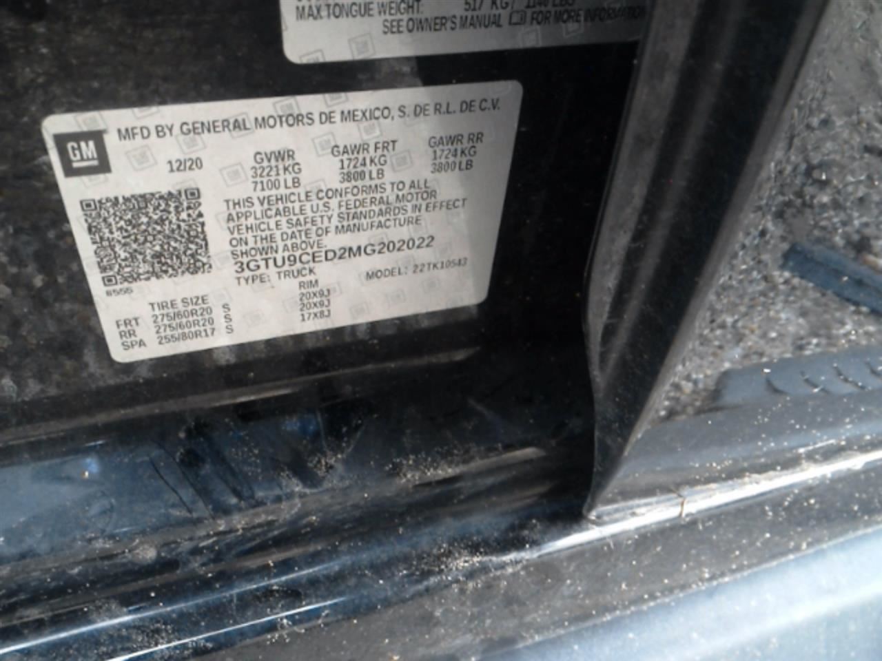 - VIN #: 3GTU9CED2MG202022