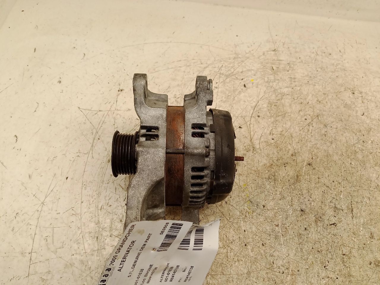 Item Description **6 MONTH WARRANTY!! 60 DAY NO HASSLE RETURNS!!** **This for a USED OEM Alternator Assembly pulled from a 2009 GRANDCHER with 158000 actual miles on it.** **Here are our part notes about this specific part:** **5.7L,GENUINE OEM PART** **Our Part #: 601-01038, 4145708** **Our Stock#: 5E0508** Please see the fitment section below to make sure this will fit your vehicle. Pay special attention to any options listed!!! In some cases, it may only fit vehicle with certain options or specific ID#s as listed below. **COMMANDER 06-10 5.7L** **GRAND CHEROKEE 05-10 5.7L** **GRAND CHEROKEE 06-10 6.1L** Whats Included? Whats Included? FAQ/ Help Shipping Payment Returns/Warranty #### Whats Included? ``` Here is a short description of what will generally be included with your item. If you would like more information or are unsure if something will come with your item, PLEASE ASK!! A/C Compressor: Includes the clutch/pulley assembly A/C Condenser: Sensors and hoses are not included ABS Units: Include the ATTACHED electronic module unless otherwise noted Alternator: Includes the pulley. Any brackets are not included Axle/CV shaft: Does not include the axle nut Blower Motor: Include the squirrel cage/fan blade Caliper: Includes the bracket and slides. Slides are not covered under warranty Column Switch: Includes wiring (if applicable) up to the first point it can be unplugged Control Arm: Includes the ball joint and any bushings Coolant Overflow Bottle: Cap is included Cowl Vent Panel: See Our Part notes, often sold as one side only Differential Carrier: Does not include axles Door Trim Panel: Includes handle and armrest. Does not include window/lock switches Engine: Included for convenience unless otherwise noted. These parts are not covered under warranty: Intake manifold, fuel injectors, oil pan, sensors, water pump Not included: Throttle body, Turbo, wiring harness exhaust manifold (may be left on in certain cases) Exhaust Manifold: Does not include turbo where applicable Fan Assembly: Includes motors, shroud, and blades. Fuel injectors: See our part notes Fuel Filler Door: Includes hinge. Does not include bolts/hardware Fuel Pump: Includes sending unit and any molded hoses that are non-removable Headlight: Brackets are included unless otherwise noted. HID headlights include the bulbs and ballast Hub: Includes wheel studs Ignition Coil(s): See part notes Interior Rear View Mirror: Does not included bracket glued to windshield Jack: See part notes. If noted as assembly, it will include the lug wrench Mass Airflow Sensor: Does not include housing unless pictured Power Steering Pump: Includes pulley and ATTACHED reservoir. Remote reservoirs and brackets will not be included Power Steering Gear: Includes pitman arm Rack and Pinion: Includes tie rods but they are not covered under warranty Radio: Pay special attention to our fitment description. Often times radios are more than one piece and we sell them each separately Spindle/Knuckle: Does not include hub unless noted Starter: Includes solenoid Strut: Struts are left assembled and include top plate, spring, and dust boot (dust boots on used struts are rarely in perfect shape) Stabilizer Bar: Does not include links or bushings Sunvisor: Does not include clip Taillight: Pay special attention to fitment as we list the trunk lid mounted taillights as well as the corners. Does not include bulbs Temperature Control: Includes all knobs, buttons, and sliders Throttle Body: Includes sensors but they are not covered under our warranty Transmission: Automatic transmissions include torque converters and sensors. Many newer transmissions require a relearn/programming procedure. Manual transmissions do not include any part of the clutch system. Transfer Case: Does not include electric shift motor Washer Reservoir/Bottle: Includes cap unless noted Wheel/Rim: Does not include center cap, tire, or lug nuts Window Regulator: Does not include motor unless noted (most are noted with motor) Wiper Motor: Does not include arms or transmission unless noted Wiper Transmission: Does not include motor or arms unless noted ``` FAQ/ Help #### FAQ/ Help ``` Will this fit my vehicle? Is this the right part? This is the most common question that we get. The fitment information can be confusing if you don't buy replacement parts everyday. Please contact us if you are unsure!! We try to respond to questions as quickly as possible and we are more than happy to answer any questions as best as we can. In order to speed up the process, it is very helpful, but not required, for you to send us your full VIN number along with your question. It looks like its the same color as my car, how can I tell for sure? The best way is to match the manufacturer paint code. Most of the time we include the paint code in our part notes. If you don't know what a paint code is or where yours is located, please feel free to ask. We are happy to help. I only see photos of the vehicle and not the actual part you are selling. Can you send me some? Our most recent listings include actual photos when we can provide them. If you would like an actual photo, we are more than happy to take one after the purchase for your approval before the part ships. In certain cases we will take actual photos before a purchase is made. This is on a case by case basis. Send us a message and we will let you know if it is possible for us to do so I see a wheel that says it is "B" condition, what does that mean? Grading of parts is a very subjective process but we do our best to keep it uniform. Here is a brief description of wheel grades: A Condition, A-COND = This is the highest grade used wheel. It will have very minor imperfections but will be in better condition than 90% of vehicles on the road. B Condition, B-COND = This wheel will have some cosmetic imperfections. It is in average condition for the year and mileage of the donor vehicle. It may have minor scratches and clear coat peeling. This is still a fairly nice 
