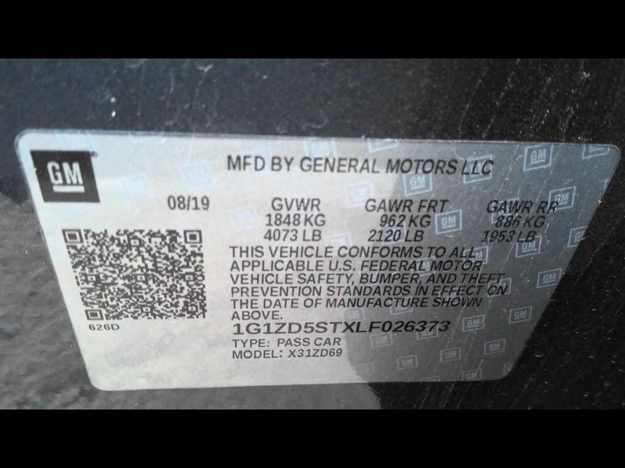 - VIN #: 1G1ZD5STXLF026373