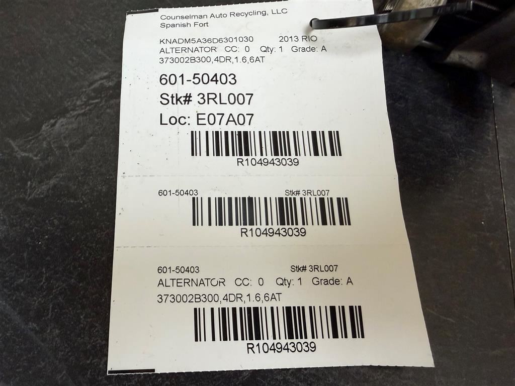 Alternator Naturally Aspirated Fits 12-17 VELOSTER 104943039 ### **This part requires VIN (Vehicle Identification Number) verification prior to shipping.** ### Please send VIN prior to purchase, or include in your purchase notes. If not, VIN will be requested after purchase, prior to shipping the order. Without VIN verification, orders are subject to seller cancellation. We answer all questions promptly during regular business hours. Monday through Friday 7am-5pm Central Time. **-** **Our Promise** ### Our Promise is that you are completely satisfied with every part you buy from Counselman Auto Recycling ### If you have a problem with the part, changed your mind or the part does not fit, simply let us know. If you need help with how to return an item, send us a message. We are here to help. **-** **Shipping Information** ### This part willl ship with Fedex or USPS with live tracking information. -