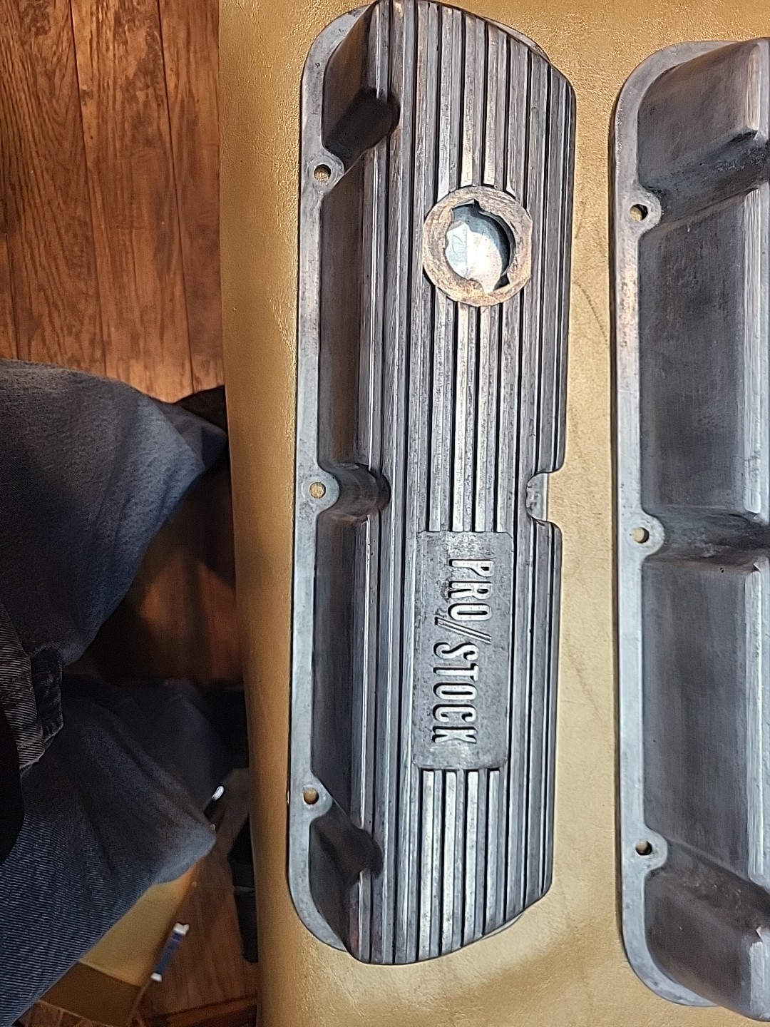 I have had these for a long time.And just never found the right use rare.I have never seen another set.They fit a small block forward.They have the baffle on the one side for the PCV valve , the other side is for oil fill Marked PRO STOCK Mark made in u s a I cleaned them in the ultrasonic.They need to be polished or finished.However , you want to finish them for your application Any questions, please ask.I am selling off all my collectible and desired parts Thank you