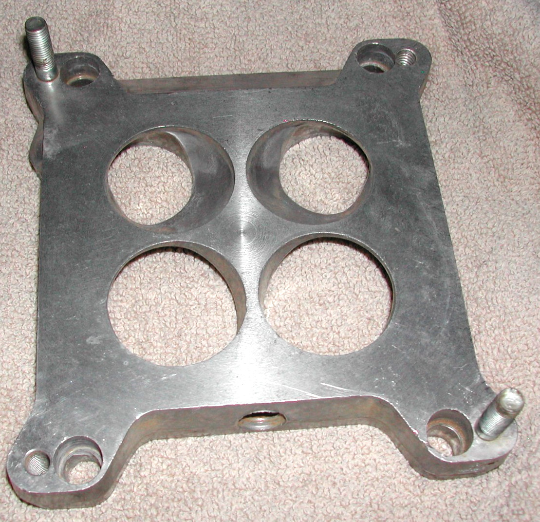 Used adapter plate for a square bore carb to a TQ or Q-Jet intake, Edelbrock P/N 2696 4-Hole, Square Bore Carburetor, Spread Bore Manifold, .850 in. thick. $9.75 shipping to anywhere in the continental US.