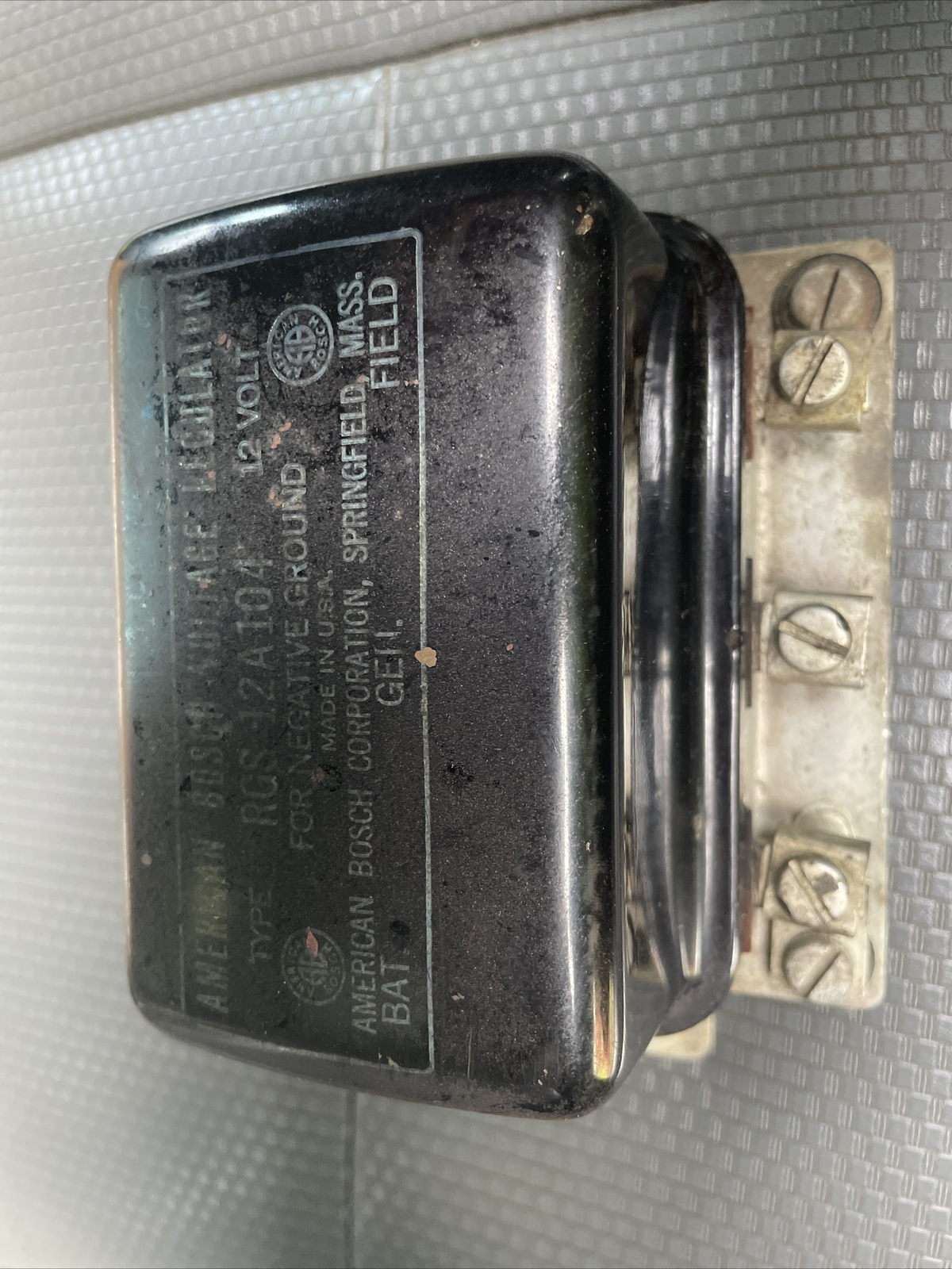 This American Bosch voltage regulator is a high-quality product that is easy to install and is designed to provide reliable performance. With its vintage design and made in the USA construction, it's a perfect fit for classic car enthusiasts. The voltage regulator is a crucial component in your car's electrical system, regulating the voltage and ensuring that your battery is charged correctly. This American Bosch voltage regulator is a great choice for anyone looking to replace their old or faulty unit. Its universal fitment and performance features make it a versatile and reliable choice for any car or truck. Preowned item … found in box of auto parts from an estate… unknown if works… looks as if was installed at one time… marks around the screw holes … please view pics for measurements and condition