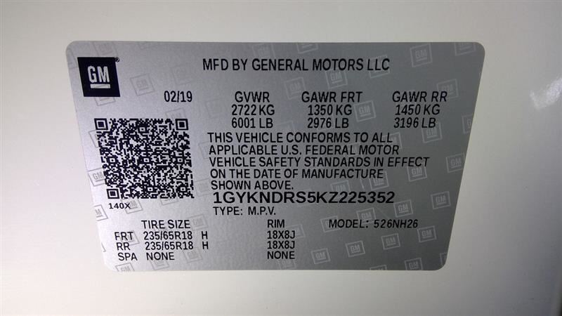 - VIN #: 1GYKNDRS5KZ225352