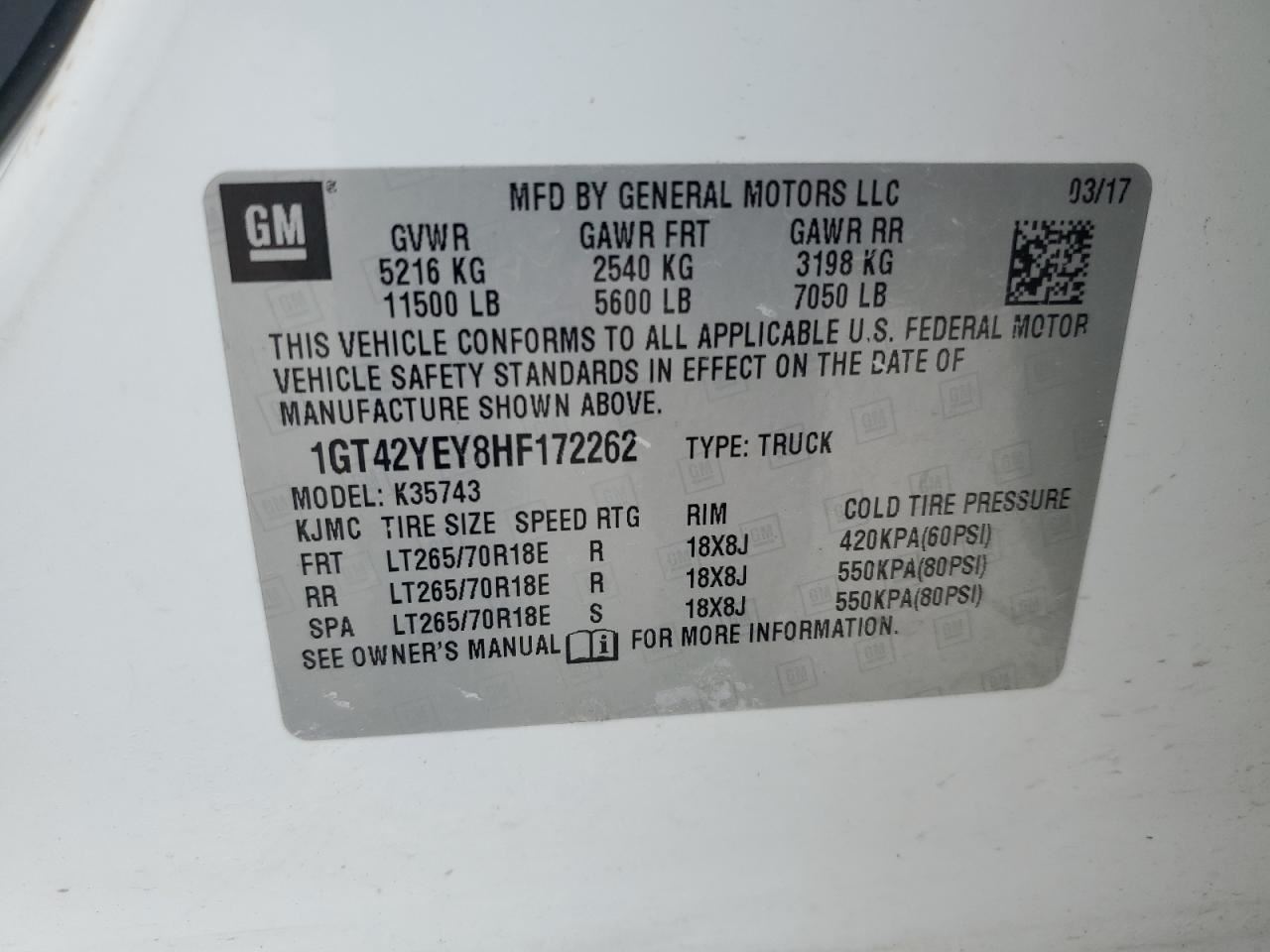 - VIN #: 1GT42YEY8HF172262