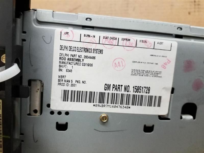 Description Donor Vehicle VIN: 1G1AK15F367804108 Model: COBALT Year: 2006 Mileage: 156000 (0 = not available or unknown) Stock Number: 303128 Store Number: 1 Part Detail Part Grade: A Part Category: U Part Placement: Notes: GREY,2.2L,UNO This part will fit these makes and models with these options PURSUIT 05-06 AM-FM-stereo-CD player (opt UN0) COBALT 05-06 AM-FM-stereo-CD player (opt UN0) WARRANTY / GUARANTEE SHIPPING NOTESABOUT USHELP **Core Charge.** Core is an acronym for ‘Cash On Return’. A core charge is sometimes applied to rebuildable parts such as engines or alternators that can be redeemed for a portion of their original price. If the part you are purchasing has a core charge applied, it will be noted in the description. **Parts Grading.** A standard code system is used to communicate the condition and quality of a part between automotive recyclers, automotive repair shops, and insurers. Knowing how these codes are used will help you understand whether the part meets your expectations before you buy it and what you can expect from the part when you receive it. A Grade\- The highest quality part. It is of low miles and/or exceptional condition for its age.B Grade\- The second level quality part. It is of average miles and normal condition for its age.C Grade\- The third level quality part. It has high miles and/or light damage.No Grade\- A part that has not yet been graded.