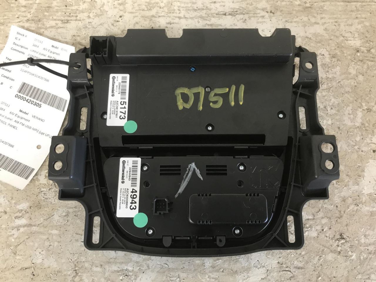 #####  Audio Equipment Radio Control Panel Without Navigation Fits 12-17 VERANO 932809 - 1  - 2  - 3  - 4  - 5  - 6  - 7  - 8  - 9  - 10  - 11  - 12  Description Unfortunately we do not have nor can provide the unlock code. Only a dealer can program the radio or provide the code. We can however provide the VIN so you can call a dealer for the code or take it to dealer to get it programmed. Some dealers parts departments are more willing to help then others so you might need to call around. The VIN of the vehicle is in our details section of the listing.  Shipping For items shipped via LTL Freight. Our freight carrier requires a commercial business address with a loading dock or forklift to unload the truck. Most of our customers choose to ship directly to the shop that is installing their part as long as it is a commercial business address. If you cannot provide a commercial business address we offer a residential delivery service at a small extra charge to cover a lift gate and residential fee. For small items we ship they will ship with UPS or USPS with live tracking information. You will receive an email with tracking information as soon as your part ships. Please allow 1-5 business days for your part to arrive. Returns If you need to return an item please when you open the return choose "I CHANGED MY MIND". Since we offer free returns you will not be responsible for returning it. Once you select that return reason a label will be issued. We offer quality tested auto parts. We also offer the best warranty program in the industry. Our knowledgeable staff is available to assist you with friendly service. We answer all questions promptly during normal business hours. If you have a question about a part please contact us BEFORE purchasing. We try to answer all messages within 24 hours. If we are unable to answer your questions before the listing ends the item will be re-listed again soon for you to purchase. About Us The Y-Yard Auto & Truck Inc is a state of the art automotive recycling center located in Effingham, Illinois. Opening our doors on July 1, 1970, the Y-Yard’s massive inventory occupies over 45 acres of the company’s 60 acre business. From domestic to import, cars-trucks-vans-and SUV’s, we continually strive at redefining the expectations of a recycled part. From product purchase through the inventory process to warehousing the parts and to the point of sale, our completely computerized systems provide fast answers in the most efficient ways. We provide multiple avenues for nationwide parts locating, as well as a variety of options for statewide delivery. For over 40 years now, the Y-Yard continues to be a locally owned, locally operated business. Managed now by the second generation, the foundation of the business remains the same; a business built on hard work, honesty and integrity but the most important priority has always been customer satisfaction. Copyright © 2022, Y-YARD AUTO & TRICK, INC., All Rights Reserved. Copyright © 2022, **Y-Yard**. All rights reserved. Designed & Developed By : eFusionWorld