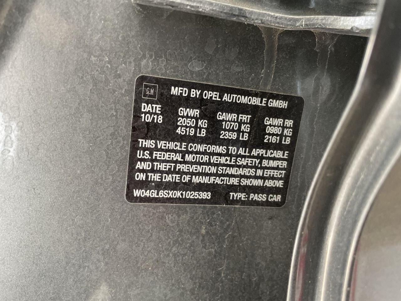 - VIN #: W04GL6SX0K1025393