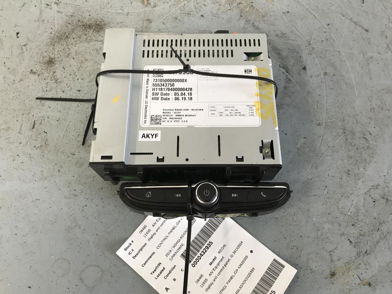 #####  Audio Equipment Radio Display And Control Panel Fits 18-20 REGAL 990396 - 1  - 2  - 3  - 4  - 5  - 6  - 7  - 8  - 9  - 10  - 11  - 12  Description Unfortunately we do not have nor can provide the unlock code. Only a dealer can program the radio or provide the code. We can however provide the VIN so you can call a dealer for the code or take it to dealer to get it programmed. Some dealers parts departments are more willing to help then others so you might need to call around. The VIN of the vehicle is in our details section of the listing.  Shipping For items shipped via LTL Freight. Our freight carrier requires a commercial business address with a loading dock or forklift to unload the truck. Most of our customers choose to ship directly to the shop that is installing their part as long as it is a commercial business address. If you cannot provide a commercial business address we offer a residential delivery service at a small extra charge to cover a lift gate and residential fee. For small items we ship they will ship with UPS or USPS with live tracking information. You will receive an email with tracking information as soon as your part ships. Please allow 1-5 business days for your part to arrive. Returns If you need to return an item please when you open the return choose "I CHANGED MY MIND". Since we offer free returns you will not be responsible for returning it. Once you select that return reason a label will be issued. We offer quality tested auto parts. We also offer the best warranty program in the industry. Our knowledgeable staff is available to assist you with friendly service. We answer all questions promptly during normal business hours. If you have a question about a part please contact us BEFORE purchasing. We try to answer all messages within 24 hours. If we are unable to answer your questions before the listing ends the item will be re-listed again soon for you to purchase. About Us The Y-Yard Auto & Truck Inc is a state of the art automotive recycling center located in Effingham, Illinois. Opening our doors on July 1, 1970, the Y-Yard’s massive inventory occupies over 45 acres of the company’s 60 acre business. From domestic to import, cars-trucks-vans-and SUV’s, we continually strive at redefining the expectations of a recycled part. From product purchase through the inventory process to warehousing the parts and to the point of sale, our completely computerized systems provide fast answers in the most efficient ways. We provide multiple avenues for nationwide parts locating, as well as a variety of options for statewide delivery. For over 40 years now, the Y-Yard continues to be a locally owned, locally operated business. Managed now by the second generation, the foundation of the business remains the same; a business built on hard work, honesty and integrity but the most important priority has always been customer satisfaction. Copyright © 2022, Y-YARD AUTO & TRICK, INC., All Rights Reserved. Copyright © 2022, **Y-Yard**. All rights reserved. Designed & Developed By : eFusionWorld