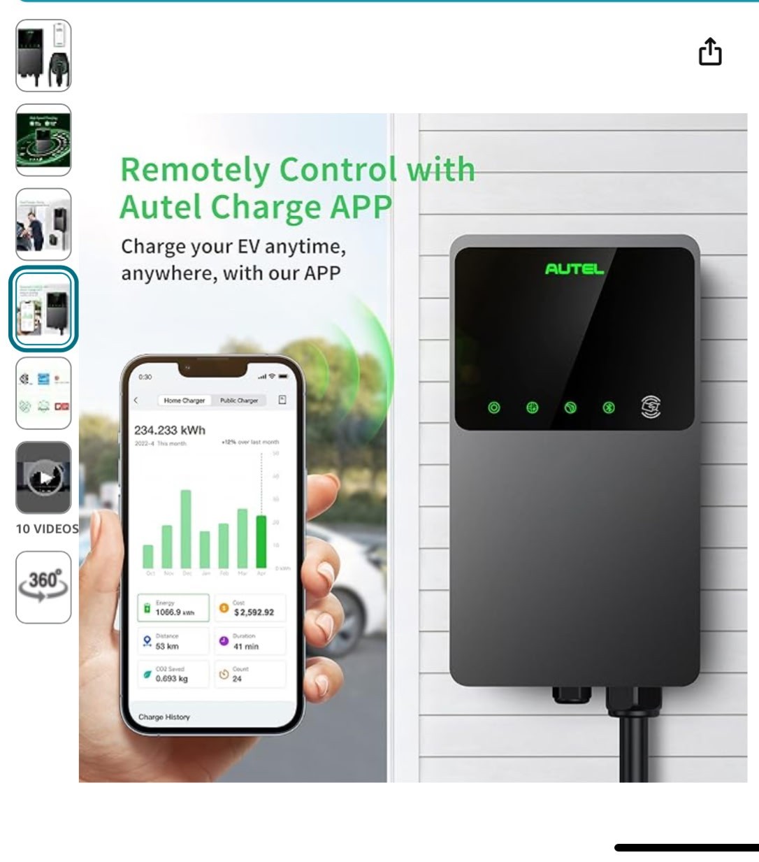 Autel MaxiCharger Home Electric Vehicle (EV) Charger W/ 25' Cable 50A Hardwired