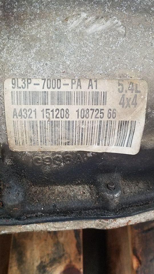 Stock Number: K25054 Store Number: 1 Part Detail Part Grade: B Part Category: U Part Placement: Notes: 5.4,AT,4X4 This part will fit these makes and models with these options FORD F150 PICKUP 09 AT; 6R80 (6 speed), 5.4L (3V, VIN V, 8th digit), 4x4 WARRANTY / GUARANTEE CLAIMS FOR DAMAGES OR SHORTAGES / Refund Policy Please remember you are purchasing OEM (Original Equipment Manufacturer) USED parts. Normal wear and tear from the previous use is expected. If you feel the item you received is in worse shape than you agreed to, please contact French Lake Auto Parts within seven (7) days of receipt of the Products. All claims, including claims for damage, defects and shortages or incorrect materials must be made in writing by Buyer within seven (7) days of receipt of the Products. French Lake Auto Parts must be given reasonable opportunity to inspect such Products to which any claim is made and reserves the right to replace any defective parts. All refunds are subject to a 25% restocking fee. French Lake Auto Parts will issue a refund on a part only if the following conditions are met - The part bears the identifying mark which appears on all French Lake Auto Parts’ merchandise. - The part has not been altered, modified, disassembled, overheated or damaged. - The part has not been installed. - The customer has their original invoice. - The part is not a special order. - The part is not a custom body cut. - The part is returned within 7 days of the original purchase date. - All shipping and handling charges are non-refundable. The expense of returning parts to French Lake Auto Parts is the purchaser’s responsibility whether that is in person or via shipping systems. All refunds will be in the form of the original payment. If the original payment is made in cash, a refund check will be issued. Payments made by check will be refunded no sooner than 10 business days from the date of the invoice. - Refunds will NOT exceed the original purchase price. - No refunds on deposits or payments. Parts with deposits will be returned to stock after 30 days. **Non-Refundable Items:** - Brokered/non-stocked parts ordered specifically for your request. - Parts that were removed specifically for you which require extensive time or cutting to remove from a vehicle are non-refundable. **Core Returns** Core returns must be drained of all fluids, assembled and complete as they were sold to you with the original containers and must be in approved rebuildable condition. Cores must be returned within 30 days to qualify for full core refund. All parts sold “as is” except as expressly provided below. Please read this Limited Warranty carefully before purchasing. **1\. - **Scope**: This limited warranty covers defects in the purchased part that render it inoperable or defective within the 90-day warranty period. If a part arrives defective/damaged or becomes defective within this period, and the claim is valid under the terms herein, French Lake Auto Parts will, at its discretion, either: - Replace the part with a comparable part in French Lake Auto Parts’ inventory, if available, or - Refund the original purchase price of the part. To qualify for a limited warranty claim, the buyer must provide clear proof (e.g., photographs or inspection report) of a crack or damage rendering the core part non-rebuildable. Bolt-on items (e.g., sensors, valve covers, timing covers) attached to core short/long blocks are not covered. **2\. Exclusions from Limited Warranty** - **Convenience Items**: Items attached to or included with the part, such as wiring, bulbs, sockets, sensors, coils, distributor caps, spark plugs, water pumps, filters, brake parts, backing plates, hoses, vacuum lines, u-joints, timing belts/components, or similar items, are considered convenience items and are not covered by this limited warranty. - **Seals and Gaskets**: All seals and gaskets are the responsibility of the buyer and are not covered. - **Labor and Related Costs**: This limited warranty does not cover labor, diagnostics, towing, rental car costs, or any other expenses related to the installation, testing, removal, or replacement of a part. - **Improper Installation or Use**: Parts that are altered, disassembled, damaged during installation, or misused are not covered. For example, improper seating of a torque converter during transmission installation that results in a broken fluid pump voids the warranty. - **Fraudulent Returns**: Parts returned without French Lake Auto Parts’ identifying marks, stamps, or heat tabs are not eligible for warranty claims. **3\. French Lake Auto Parts encourages buyers to cooperate in diagnosing the cause of any part failure to determine eligibility for replacement or refund. No warranty exchange or refund will be given until the part for which warranty coverage is being sought is returned to French Lake Auto Parts at the cost and expense of the buyer. Notwithstanding the foregoing, if a returned part is determined by French Lake Auto Parts to qualify for a limited warranty replacement or refund due to defect or error by French Lake Auto Parts, the buyer will be refunded the cost of shipping the part back to French Lake Auto Parts. - **Inspection**: All returned parts are inspected for installation damage, alterations, or missing components. Parts found to be damaged, altered, or missing components will not qualify for a warranty claim. **4\. Non-Warranty Returns** - Returns for reasons such as “wrong part” or “not wanted” must be requested within 7 days of receipt and are not covered under this limited warranty. Buyers are responsible for return shipping costs, and the part must be returned in its original condition, undamaged and unaltered. **5\. Dispute Resolution** - **Informal Resolution**: Buyers and French Lake Auto Parts agree to attempt to resolve any disputes related to the purchase or warranty informally for a period of 60 days before pursuing arbitration. - **Binding Arbitration**: Any u