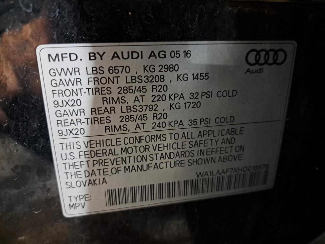 - VIN #: WA1LAAF7XHD018976