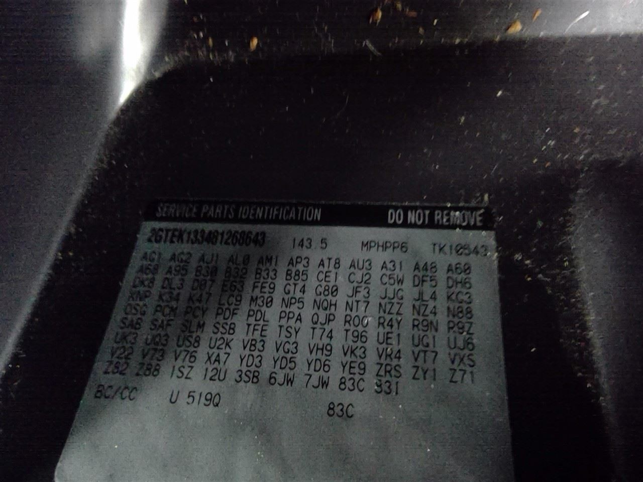 - Donor VIN: 2GTEK133481268643