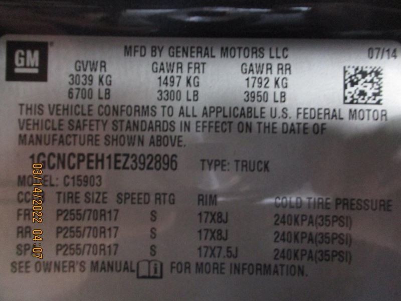 - VIN #: 1GCNCPEH1EZ392896