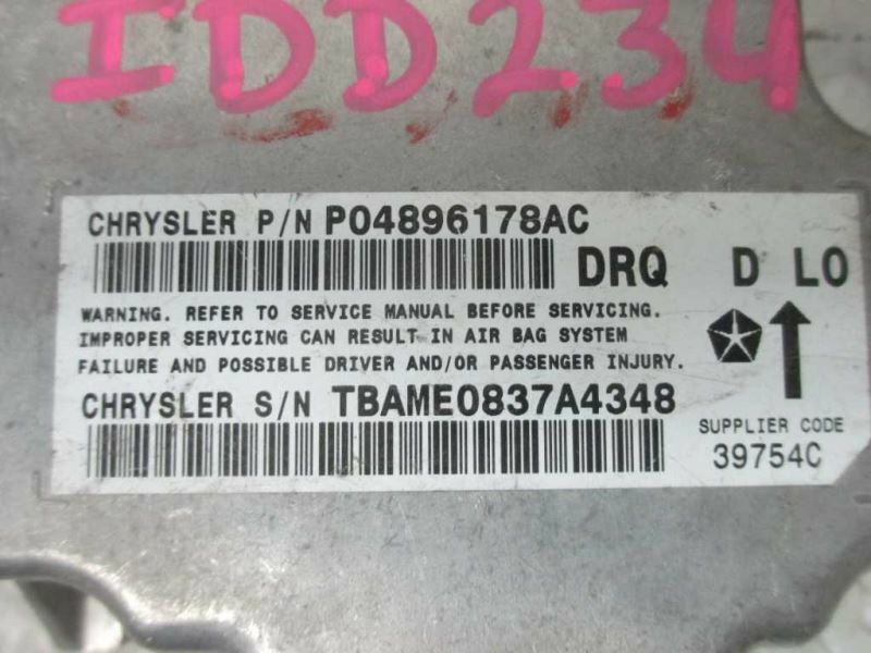 Description Donor Vehicle VIN: Model: Year: 0 Mileage: 0 (0 = not available or unknown) Stock Number: IDD234 Store Number: 1 Part Detail Part Grade: A Part Category: U Part Placement: Notes: 04896178AC This part will fit these makes and models with these options DODGE 1500 PICKUP 07 Air Bag; (air bag deployment), w/o roof air bags; Quad Cab (4 Dr), from 8/1/06, (ID 4896178AC) WARRANTY / GUARANTEE # **Please read before placing an order** Parts from 1998 and up vehicles are complicated and anti-theft systems have further complicated installation of used or new modules. Replacing an ECM in most cases require re-programming by a qualified Technician or high tech automotive locksmith. In most makes and models dealerships tools are locked by the manufacturer to prevent installation of used modules into a vehicle. Please verify installation procedures before purchase. We are not able to answer any questions related to installation. **_Buyers need to qualify the reprogrammers of the ECM to make sure they have the required tools or knowledge for each vehicle applications. If they are unable to program they will condemn the ECM as defective._** Buyer hereby acknowledges that the sellers' liability is limited to the price of the item sold. **Returns:** All items sold carry 30 days return policy. Returned item absolutely must be in exact same condition of listed item, please ensure you package item carefully since you are responsible for condition of purchased item. If item purchased in error or no longer needed 20% re-stocking fee will be applied, shipping cost is not refundable. In case of DOA part, please contact us immediately, We reserve the right to exchange DOA part, if available, otherwise we will refund your account upon receiving the purchased item back. Buyer pays for return shipping costs in any situation. Most late model ECMs have to be initialized and programmed in your vehicle to function. Buyer cannot condemn the module as defective for this reason and it is buyer's responsibility to foresee such tasks **Compatibility:** Buyer is ultimately responsible to verify fitment of purchased part. Please do your homework before purchasing. Most of problems related to compatibility could be avoided if you match your part number to ours. We only sell modules based on OEM part numbers. **Shipping:** We ship daily except major holidays. All orders are shipped the same or the next day of payment. Fast and Free shipping. **Customer satisfaction is our NUMBER ONE goal; we will work with you to provide the best possible service. Including Alaska, Hawaii, Puerto Rico, Guam International shipping available. Pick up at our facilities is available. Please email us prior to your purchase to arrange pick up. Items will be shipped at same or next day of purchase. We try to answer all messages within 24 hours. If we are unable to answer your questions before the listing ends the item will be re-listed again soon for you to purchase. **Core Charge.** Core is an acronym for ‘Cash On Return’. A core charge is sometimes applied to rebuildable parts such as engines or alternators that can be redeemed for a portion of their original price. If the part you are purchasing has a core charge applied, it will be noted in the description. **Parts Grading.** A standard code system is used to communicate the condition and quality of a part between automotive recyclers, automotive repair shops, and insurers. Knowing how these codes are used will help you understand whether the part meets your expectations before you buy it and what you can expect from the part when you receive it. A Grade\- The highest quality part. It is of low miles and/or exceptional condition for its age.B Grade\- The second level quality part. It is of average miles and normal condition for its age.C Grade\- The third level quality part. It has high miles and/or light damage.No Grade\- A part that has not yet been graded. To learn more about Parts Grading click here.