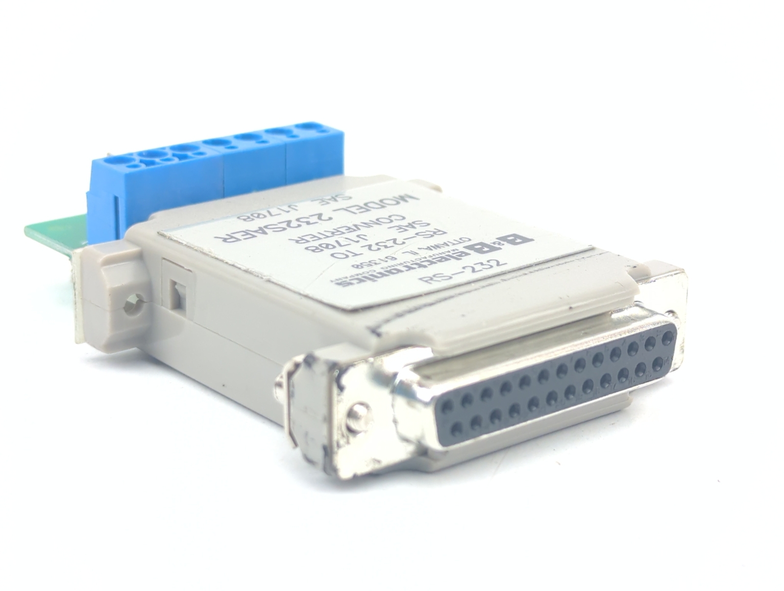 -  -  -  ITEM DESCRIPTION - **B&B Electronics RS-232 to SAE J1708 Converter** - The model 232SAER will allow any computer with an RS-232 port to communicate with vehicles using the SAE J1708 specification. SAE J1708 is the specification for serial communications between microcomputer systems in heavy-duty vehicle applications. - Type: Light Industrial ITE Equipment - Application of Council Directive: 89/336/EEC - Standards: - EN 50082-1 (IEC 801-2, IEC 801-3, IEC 801-4) - EN 50081-1 (EN 55022, IEC 1000-4-2) - EN 61000 (-4-2, -4-3, -4-4, -4-5, -4-6, -4-8, -4-11) - ENV 50204 - EN 55024 - Manufacturer: **B&B Electronics** - Model Number: **RS-232 to SAE J1708 Converter** - Part Number: **232SAER** - **Condition: In Stock, Ready to Ship!** This unit is in very good physical condition. **See Photos.** Guaranteed in good working order and covered by a 14 day policy. This listing is only for what is shown in the photos. No other parts or pieces are included. PAYMENTSHIPPINGRETURNSDISCLAIMERCONTACT PAYMENT We accept PayPal, Visa, Master Card, American Express and Discover. This item is available for Purchase and Pick up at our Location in Costa Mesa, CA. SHIPPING **Multiple Items:** We will combine as many items as we can for the original quoted shipping. Each time we need to split an order into multiple boxes the shipping will double. Higher shipping and handling cost prevail. **Domestic Shipping:** All items will be shipped via USPS First Class Mail unless otherwise specified. We do not charge any handling or packing fees. We only charge what it costs us to ship! If you have a different shipping preference or if you would like to use your own shipping account please let us know. **International Shipping:** All items will be shipped via USPS Priority Mail International unless otherwise specified. Items will not ship until full shipping fees have been collected. International First Class Shipping may be available on items weighing 4 lbs or less and is less expensive than Priority Mail. First Class Mail can take up to SIX Weeks for delivery. If you would like a quote for First Class International Shipping and you can wait up to SIX weeks for your item please send us an email requesting a quote for First Class International Shipping. **Free Shipping:** If an item is offered with Free Shipping - Free shipping is for lower 48 United States Only. If you are unsure if you are in this area please email us before buying. No free international shipping. Original postage will be deducted from refunded items that were offered with Free Shipping. RETURNS **Returns:** We will make every effort to be sure that your transaction goes smoothly but occasionally things don't go as planned. If there is any problem with your order or if you need to return your item, send us an email as soon as possible. (see important return details below) Our return policy insures the 100% satisfaction your purchase for up to 30 days. If the number of days offered in the listing has passed by since you received your purchase, unfortunately we are unable to offer you a refund or exchange. (AS IS or For Parts items are not eligible for any type of refund or exchange) To be eligible for a refund; all parts, pieces, documentation and packaging must be returned within the allotted time and in the same condition that you received it in. There are certain situations where refunds are not granted (if applicable) Any item returned not in its original condition, is damaged or missing parts for reasons not due to our error. **Refunds (if applicable)** Once your return is received and inspected, we will send you an email to notify you that we have received your returned item and issued you a refund. Your refund will be processed, and a credit will automatically be applied to your credit card or original method of payment. In some cases credit card refunds takes a few days to show a credit on your account. **Sale items (if applicable)** Only regular priced items may be refunded, unfortunately sale items cannot be refunded. **Exchanges (if applicable)** We only replace items if they are defective or damaged. If you need to exchange it for the same item, send us an email to arrange the exchange. If you need to return an item and you believe that it qualifies for a refund, please email us for return shipping instructions. You will be responsible for paying any shipping costs for returning your item. Shipping costs are non-refundable. If you receive a refund, the cost of shipping will be deducted from your refund. You should consider using a trackable shipping service or purchasing shipping insurance. We do not make any guarantee that we will receive your returned item. Original postage will be deducted from refunded items that were offered with Free Shipping. DISCLAIMER This site makes use of licensed stock photography. All photography is for illustrative purposes only and all persons depicted are models.