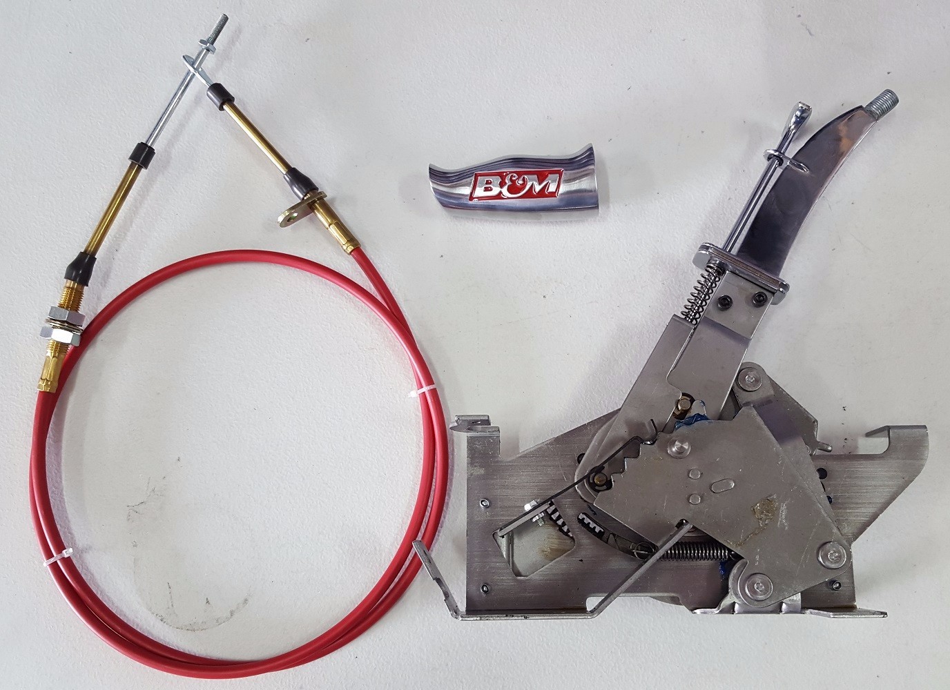 **B&M 80680 Truck/SUV Automatic Megashifter GM Chevy Ford Mopar Chrysler NEW** **Part #** 80680 - Universal 3 & 4-speed Compatible Shifter **B&M Fitment** - GM TH400, 350, 250, 200, 700R4/4L60, 4L60E, 4L65E, 4L80E automatic transmissions (for 4L60E, 4L65E, 4L80E with PRNDL switch, use optional bracket kit #70499. Ford C4, C5, C6 and AOD (AOD will require optional kit#40496) AODE, 4R70W #40504 and E40D & 4R100 will require optional kit #40505. Fits Chrysler 1966 and later Torqueflite A727 (36RH/37RH), A518 (46RH/46RE), A618 (47RH/47RE/48RE), A904 (30RH), A999 (32RH), A500 (40RH/42RH/40RE/42RE/44RE) automatic transmissions. **B&M Features** - Forward and Reverse Shift Pattern Compatible - Console can be Trimmed for Custom Fit - Ratchet Action Ensures Positive Shifts - Meets NHRA/IHRA Safety Standards - Taller Shifter for Truck Applications - Classic Race Styling & Heritage - Over 65 Years of B&M Quality - Lifetime Limited Warranty **B&M Specs** - Application: Universal - Backup Light Switch: Yes - Brand: B&M - Cable Included: Yes - Color/Finish: Polished handle and black plastic console - Cover Included: Yes - Lighted Indicator: Yes - Material: Polished aluminum handle and plastic console - Mechanism Type: Ratchet - Neutral Safety Switch: Yes - NHRA/IHRA Approved: Yes - Product Type: Shifter - Shift Lever Length (in): 14.85 - Transmission Type: Automatic The B&M MegaShifter has it all, form, function and classic style. This all adds up to bring you a quality shifter that's been one of the most popular automatic shifters of all time. The light truck MegaShifter is better suited for truck and bench seat applications with its overall height of 14.85-inches tall (2.25-inches taller than #80690 MegaShifter.) The positive ratcheting action won't allow you to over-shift and miss a gear at that critical moment, along with the reverse lockout feature meets NHRA/IHRA safety rules for those weekend grudge races at the track, while the look and feel of the T-handle and accordion style shift boot really shows off its racing heritage. Other features include a black console that you can trim to match the contour of your vehicle's floor, 5-foot long shifter cable, cable brackets, transmission shift levers, chrome plated top plate with lighted gear indicator and everything needed for an easy at home installation. An optional T-handle with a 12-volt button is available separately for actuating a trans-brake, nitrous oxide or other accessories for the hard-core performance enthusiast. This shifter comes with all necessary parts for use with three and four-speed automatic transmissions such as 1966 and later Chrysler Torqueflite A727, A904, A500, and A518 transmissions. Ford C4, C6 transmissions. GM models TH200, TH250, TH350, TH400, 2004R, 700R4, 4L60, 4L60E through 4L85E without PRNDL switch transmissions. For Ford AOD transmissions you will need installation kit #40496, AODE and 4R70W require installation kit #40504, E40D and 4R100 require installation kit #40505 and GM 4L60E - 4L85E transmissions with PRNDL switch require cable bracket #70499. Overall Dimensions - 14.9L x 6.4W x 14.8H