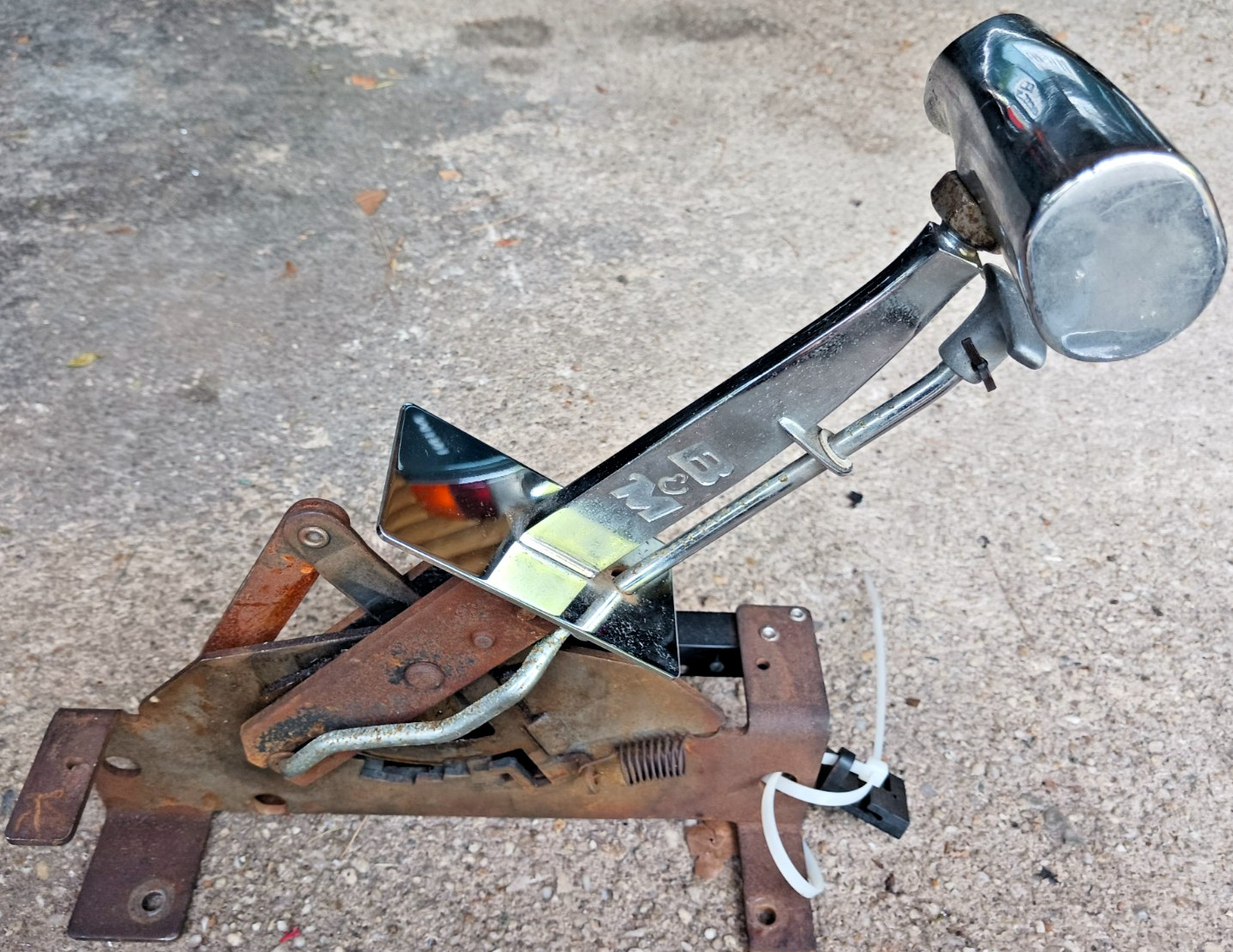 NICE VINTAGE B&M MEGA RATCHET AUTO SHIFTER + T-HANDLE FOR A VARIETY OF APPLICATIONS. Overall AS SHOWN with NORMAL wear as shown. NO cracks. NO repairs. Moves freely as it should. READY TO MOUNT! Sold AS IS. NO RETURNS OF ANY KIND. If unsure please do not buy them. Thanks and good luck.