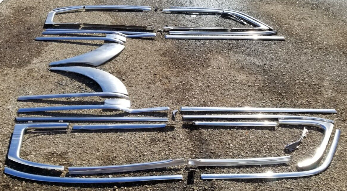 **NO****RETURNS** **& CALLING US LIARS BY CLAIMING "item not as described"!** **Or you will star in one of our YouTube video's and be** **permanently** **blocked!** **See Our 1%ers section below.** **JUST IN** **53-54 Chevy's** **This Listing is for**...Complete Belair Door trim set for 4 doors. Over windows, around windows, belt trim below windows, spears through the middle of the doors with small and large shields on back doors, includes mount hardware we could save. Some dings/scuffs/scratches as you would expect from 70 year old trim, but no serious damage. Perfect set for an Original for a Patina Car and weekend Show Car or restore for all out show. We probably have the rest of the set if you need it also, if you need a set of something specific you can make an offer worth breaking the set, dragging it all out, re picturing, relisting, etc. etc. **Off the Chevy pictured...may fit others.** **Other parts available in other listings.** **Parts may not be perfect but might be nicer than yours.** Hard to find! **Other parts pictured may be available in other listings.** **No other trim or parts included.** **Parts look good to us to restore, but look at pictures,****be your own judge, and do your own fitment research before purchase...no refunds, returns, guarantees, or warrantees expressed or implied.** **Shipping** **Shipping listed on oversize items is just an estimate, good for about half the country, and** **varies** **by location.** **We can get pallets to most places for under 200.** **If its big, no, shipping isn't a buck...you can guess in the 1000 range for complete cars.** **We do ship some things we sell if we have more than one reason to head that direction.** **1%ers Disclaimer** **By purchasing you are agreeing to these terms!** **NO****RETURNS** **& CALLING US LIARS BY CLAIMING "item not as described"!** This means no one percenters. As such, the 99% have the realization that the item they are buying is dirty, used, old and may have idiosyncrasies to match, and they not only appreciate that, but enjoy the thrill of the risk and embrace it all as part of the items individual story, character, and charm! Disgusting! So guess what? All that leads to is a item cost mark up and a lack of transparency in a break down of what you are actually paying for, all because of being duped by the propaganda sound of "free shipping". So don't even attempt in the notes of an offer to say "including shipping" or "combine shipping". So if you want "free shipping" or "combined shipping" do the 3rd grade math...subtract the shipping from the items asking price and offer that instead, then you can see what you are actually asking us to accept in real numbers, because shipping is NEVER FREE.Moreover, shipping is not just shipping, its also a couple bucks handling. We are not shipping factory packaged blenders here. We have to source boxes and packaging material from several locations, store the boxes, then many times cut boxes to fit in effort artfully balance protecting your item while keeping the package dimensions inside specified shipping girth, and in cases where it still must go freight we have to customize/build pallets for your order to meet the various shippers ever changing specifications. So...if you are a one percenter, this is for you! The described item is as pictured, if a picture is worth a thousand words, do not ask us to describe details or what condition the item is in beyond our purposefully short description of what the listing is for. Opinions vary wildly, and we certainly do not have the time to get to know all the idiosyncrasies of your project tastes and goals, in order to explain what is relevant to only you, that is obvious in pictures. You could be a Rat Rodder searching for a rusted out part that is missing on your Shock Rod, or a concourse restorer, or anything in between, we have no way of knowing. Also items are many times pictured on the car, so READ THE SHORT DESCRIPTION of what the listing is for, do not assume because you think its related its included. "But it was in the picture." Yea, we picture other parts of the car so you can see the general condition, so the whole car was in the picture...did ya think the whole vehicle was included? READ THE SHORT DESCRIPTION. Furthermore, titles are just key words for ever changing search algorithms, if you don't understand that, go research it on Google. Many times we add words to titles because we see our customers using parts in an other than factory application, this does not mean we are parts interchange manuals, know you're own vehicle! So to be clear, the parts you are looking at may be between 30 and 80+ years old and may look like the came out of Oscars the Grouches residence, being dusty/dirty, perhaps even having Charlotte's web inside, feasting on dead flies. They probably came from abandoned vehicles in ungodly locations, which means, they were left to the elements and rarely moved, so sun fading, wind chapping and who knows what else may have occurred. When they were moved, they were drug by chains and tow straps, or pushed by tractors(with a tire between them if they were careful) by tired dirty farmers who just wanted to get the vehicle out of their way. So by purchasing, the buyer acknowledges they have received pictures of all items to their satisfaction, have seen they are rusty, dented, dinged, pitted, peeling, fading, cracking, torn, deteriorated, broken, smelly, dirty, bug and web infested used parts off of old vehicles that were abandoned to the elements and may even have the afore mentioned damage/rust/etc. that may not have been visible as with personal inspection, however, despite all this, the buyer has inspected pictures to their satisfaction, calculated their fitment and application, and has negotiated prices on these parts, realizing they are taking a calculated risk. No returns, guarantees, warrantees, charge backs, or refunds have been expressed or implied. All said, the buyer realizes, 