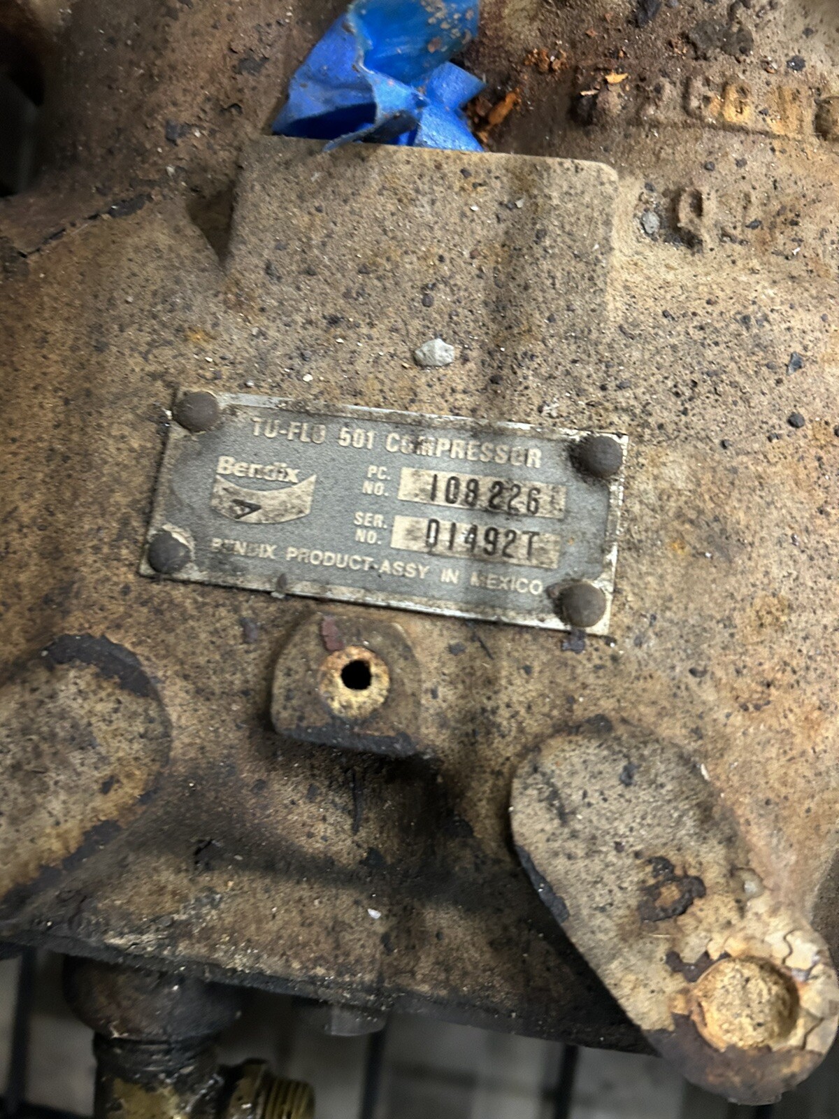 This is a used compressor that worked great. It was mounted to a 12v cummins out of a 1992 school bus. The engine has 32465 miles on it. Hours unknown.