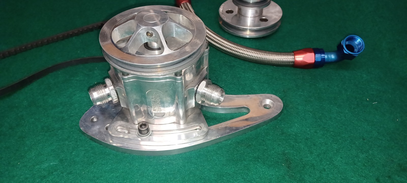 You are looking at a very nice Big Block Chevy Aerospace Components billet vaccum pump with billet mounting bracket, mandrel drive pulley assembly, drive belt and 12an braided hose. Removed in perfect working order. Please view the pictures provided as it will come exactly as shown. It will be very well packaged ensuring safe arrival at your door. Thanks for looking! \*Please view my feedback profile and buy with confidence. \* \*\*Please note that shipping outside of the lower 48 states will be subject to an additional fee. Please contact me prior to purchasing for the adjusted rate. \*\*