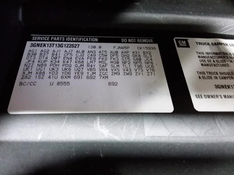 - VIN #: 3GNEK13T13G122627
