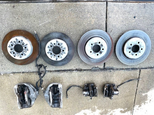 This is a set of front and rear brake calipers and rotors from my 2011 BMW 535i with 95k miles. I have upgraded to a big brake kit so no need for these stock components anymore. You may need new pads for the rear brake. The front is still fine. I am in S. California (CA 91722) and local pick-up only. I can deliver them to you for a fee(within 30 miles). If you need only a front or rear set, please let me know.