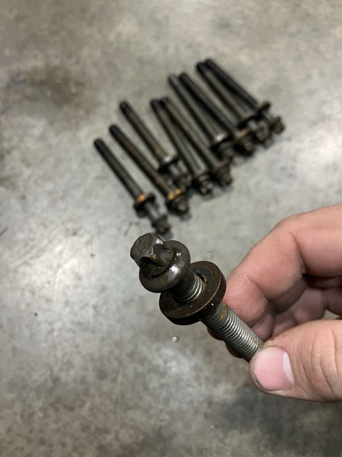 BMW 318 m44b19 head bolt set (10 total). They are used. Washers included. Some of the washers have very light surface rust as pictured.