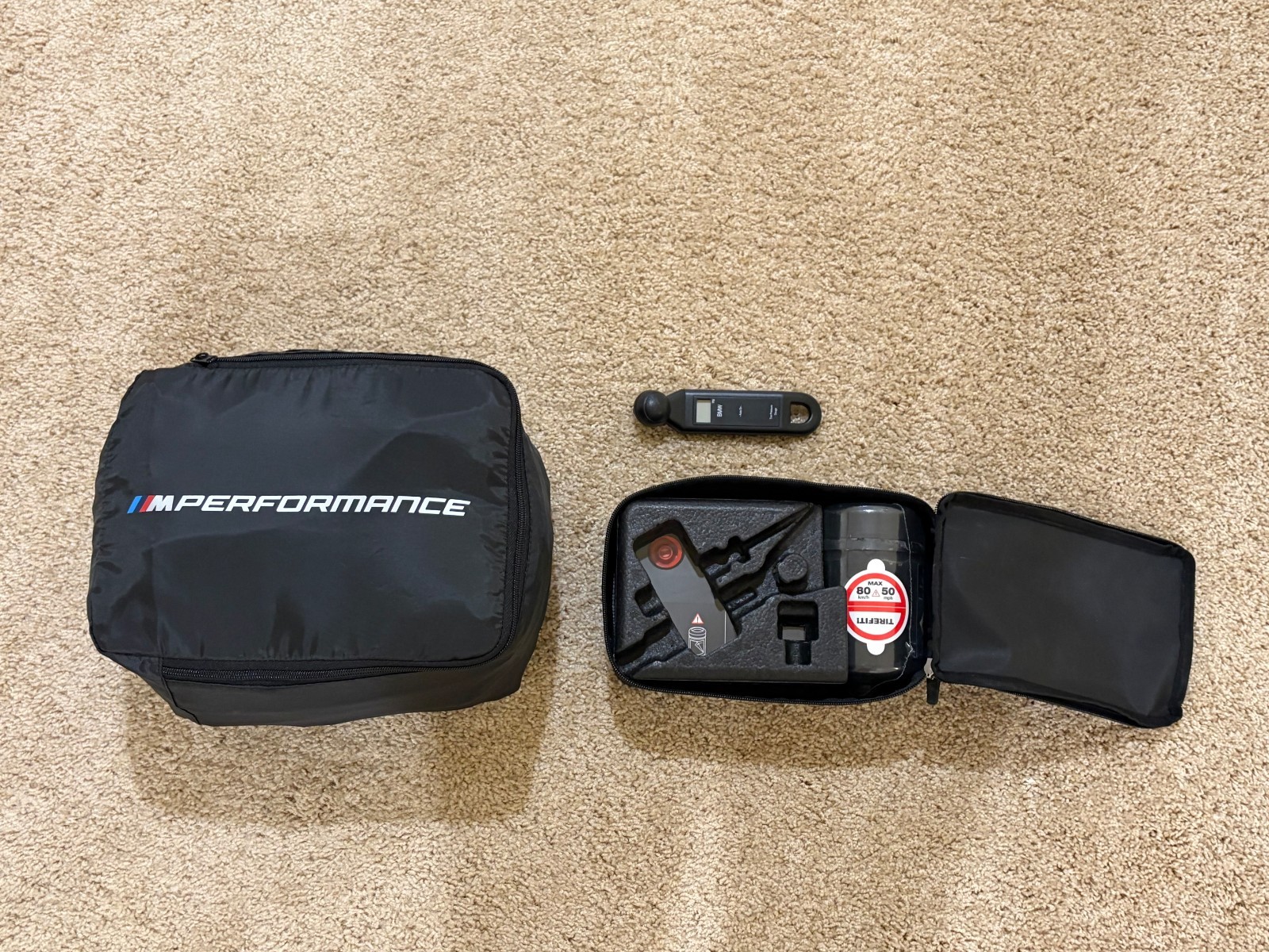 **BMW M PERFORMANCE TIRE BAGS + EXTRA** \-\-\--------------------------------------- Brand: BMW. Fit: WHEEL DIAMETERS 17-22" (325 MAX WIDTH). SKU: 36132461758. BMW Electronic Tire Pressure Guage + BMW Tirefit. 100% GENUINE. GREAT CONDITION. **ANY QUESTIONS FEEL FREE TO ASK.** \-\-\--------------------------------------- **You Must Return Item in the Same Condition as it was Received.** **Seller Pays 25% Restocking Fee.**