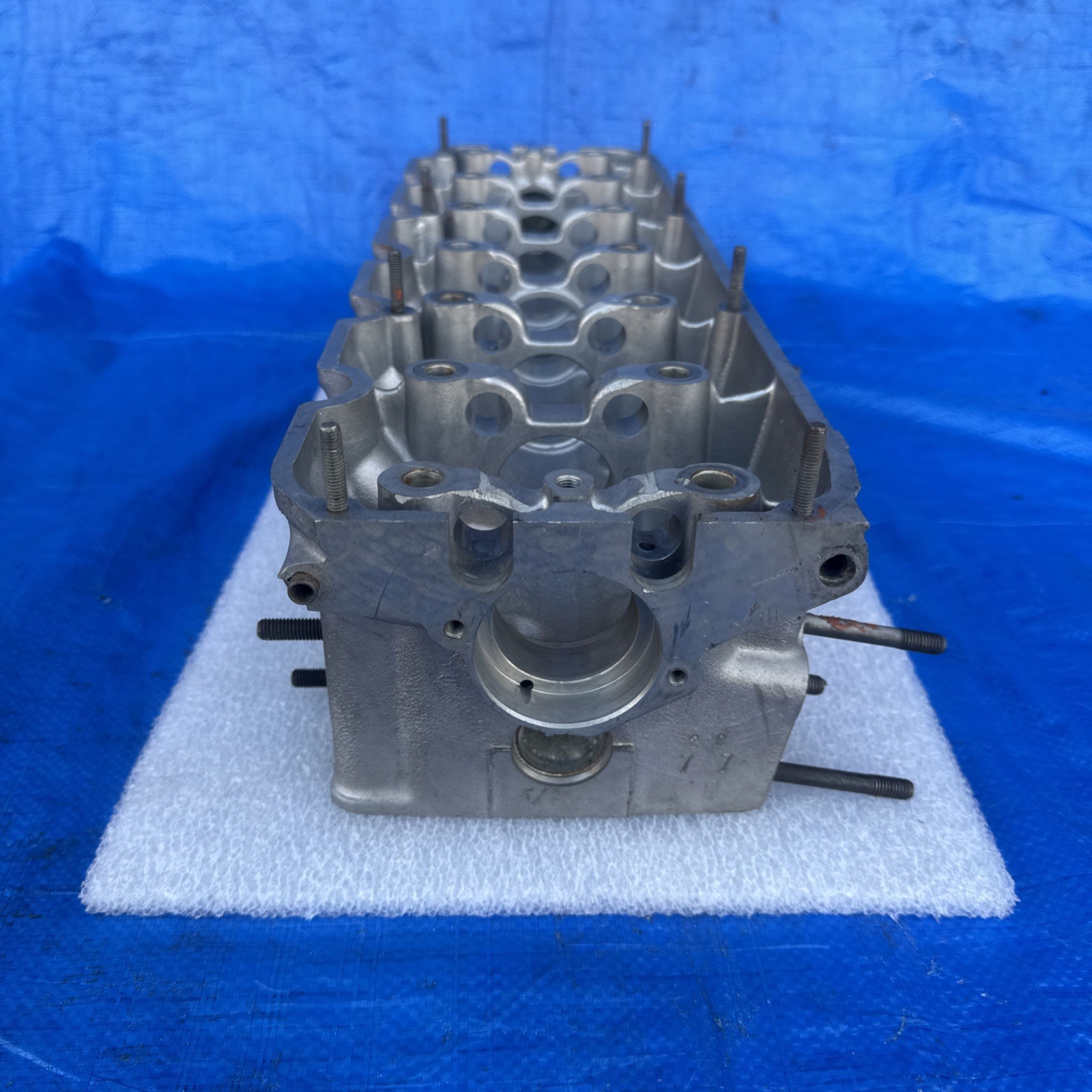 item removed from an eta e30 bare head includes bronze valve guides was rebuilt for a customer but customer went a different route item was decked .004 to ensure straightness does not included valve train does not include camshaft item was pressure tested for cracks was inspected for cracks at the camshaft journals in good conditions Valve job setas were done at 45 degree no valves free shipping